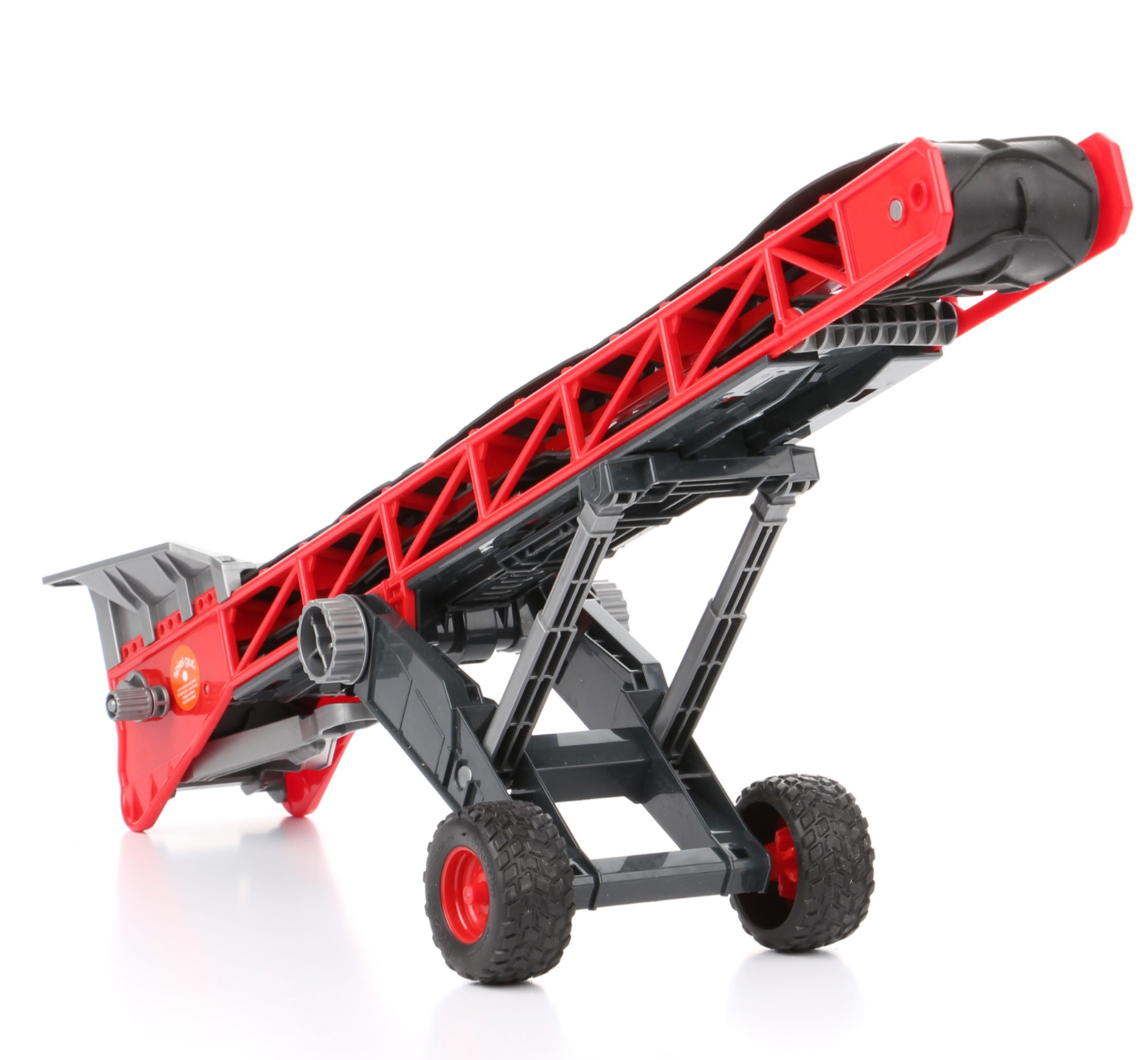 Ősi idők óta a szállítószalagok segítettek a férfiaknak a nehéz terhelések, például kövek, faanyagok, ömlesztett anyagok és mások szállítására, emelésére és csökkentésére. Annak érdekében, hogy a kis mester építőink és gazdálkodóink könnyebbé tegyék feladataikat, a BRUDER most egy korszerű szállítószalagot indít el. Ez az eszköz vonzó kialakítással és emelő- és szállítómechanizmusaival megkülönböztethető, amelyek a beépített forgattyúműnek köszönhetően könnyen kezelhetők. A mechanizmusok felhasználhatók a széna bálák felemelésére a pótkocsira, és azokat a pajtába történő szállítására, valamint a homok vagy a szikla szállítására és kirakására a tehergépjárművekről. A szállítószalag természetesen minden BRUDER vontatójárműhöz, például traktorokhoz, Unimogs-hez, tehergépjárművekhez, köztük a Sprinterhez és a vonórúd-csatlakozóval felszerelt építőipari járművekhez is csatlakoztatható.