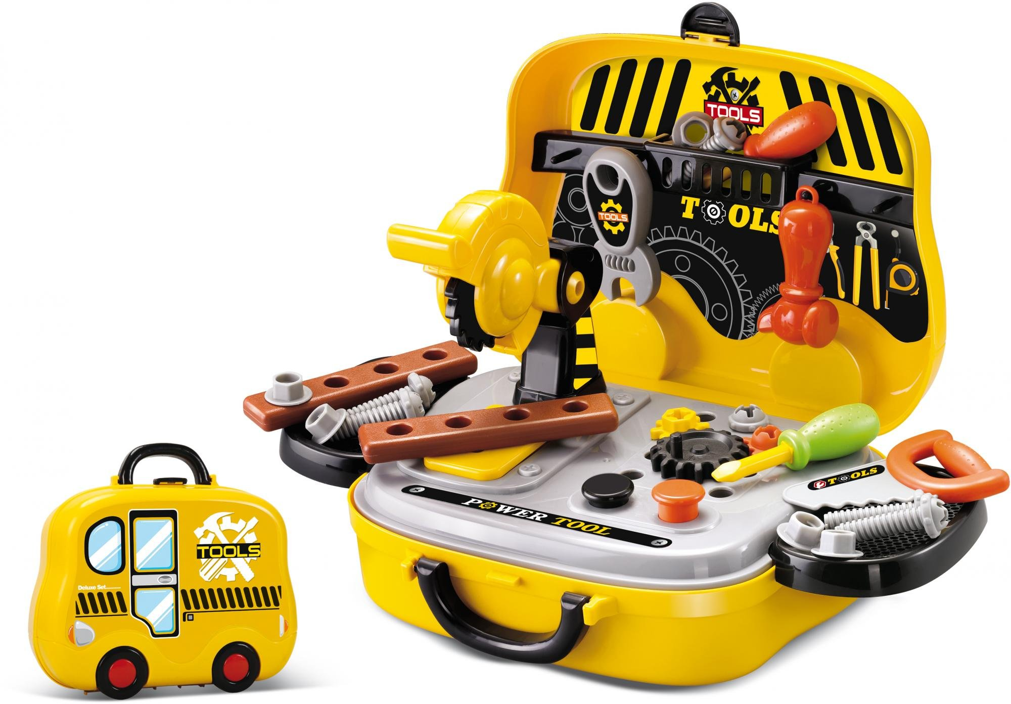 Ez egy ideális játék, amely elősegíti a gyermek "profi" játékosságát: barkácskészlet egy bőröndben. Különböző kiegészítőkkel (összesen 25 db). Mind kiváló minőségű és tartós műanyagból készült.