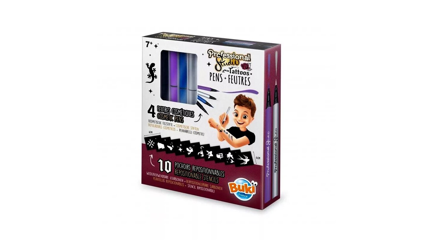 A kreatív önkifejezés sosem volt még ilyen szórakoztató! A Buki különleges tetováló toll készlet segítségével a gyerekek biztonságosan próbálhatják ki a tetoválás művészetét – természetesen ideiglenes formában.