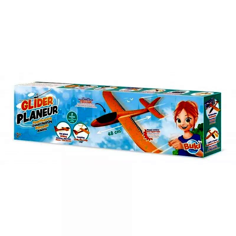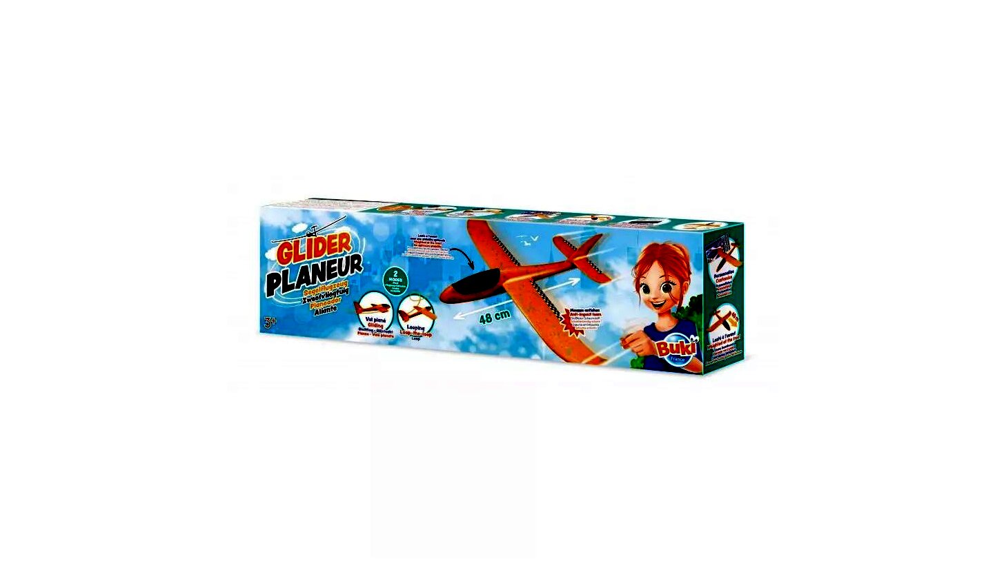 A BUKI Vitorlázó repülőgép szárnyainak állításával kétféle repülési mód közül választhatunk: egyenes siklás vagy pörgő-forgó loop-mutatványok. Ez még színesebbé és izgalmasabbá teszi a játékélményt.