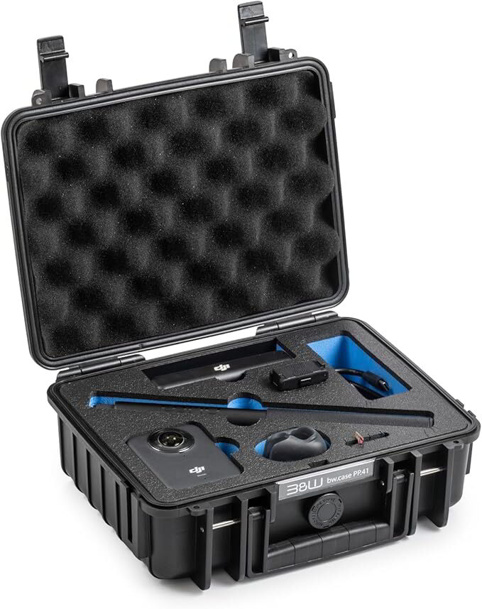 A B&W Action Case PP.41 kompatibilis a DJI Osmo 360 számos kiegészítőjével, így biztosítja, hogy minden szükséges felszerelés kényelmesen és biztonságosan tárolható legyen egy helyen.