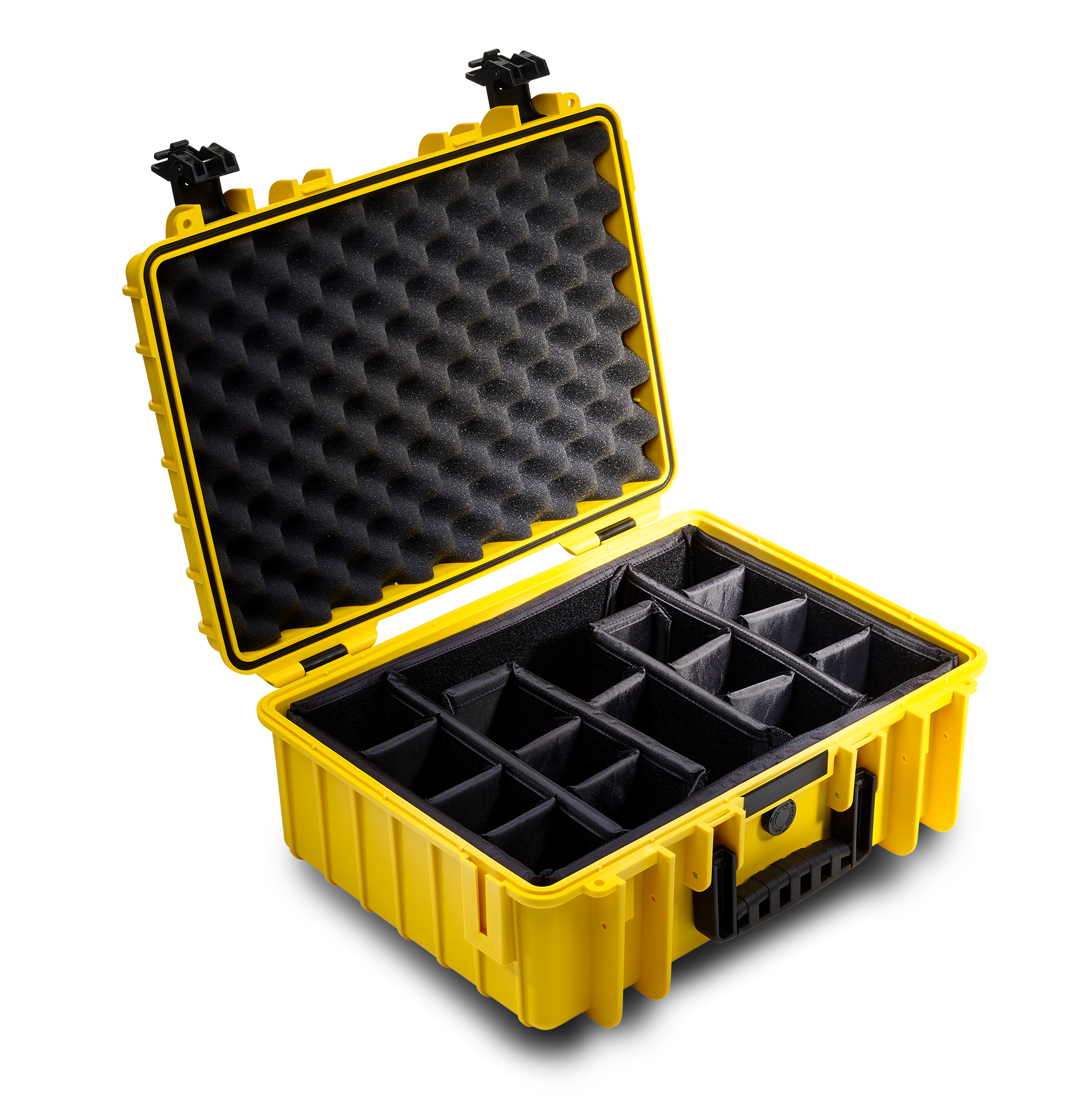 Az outdoor.case típusú 5000 egy kültéri tok, amely nem hagy maga után kívánnivalót maga után. Kifejezetten a professzionális fotósok igényeire szabva megbízhatóan védi az olyan rendkívül érzékeny berendezéseket, mint a fényképezőgépek, objektívek, vakuk, akkumulátorok és memóriakártyák, valamint praktikus, kompakt és könnyen szállítható. A rendkívül robusztus polipropilénből készült tok optimálisan nyeli el az eséseket anélkül, hogy a tartalom károsodna. Mivel a legjobb fotómotívumok a világ minden táján megtalálhatók, az 5000-es típus automatikus légnyomás-kiegyenlítő szeleppel van felszerelve, így légi úton is hűséges társ. Mi a B&W-nél meg vagyunk győződve tokjaink kiváló minőségéről, ezért 30 év garanciát adunk az 5000-es típusra.