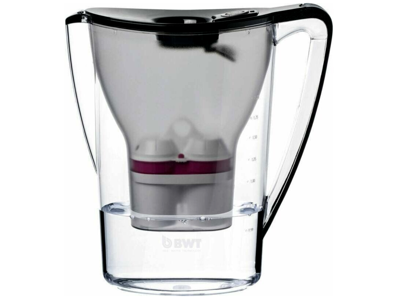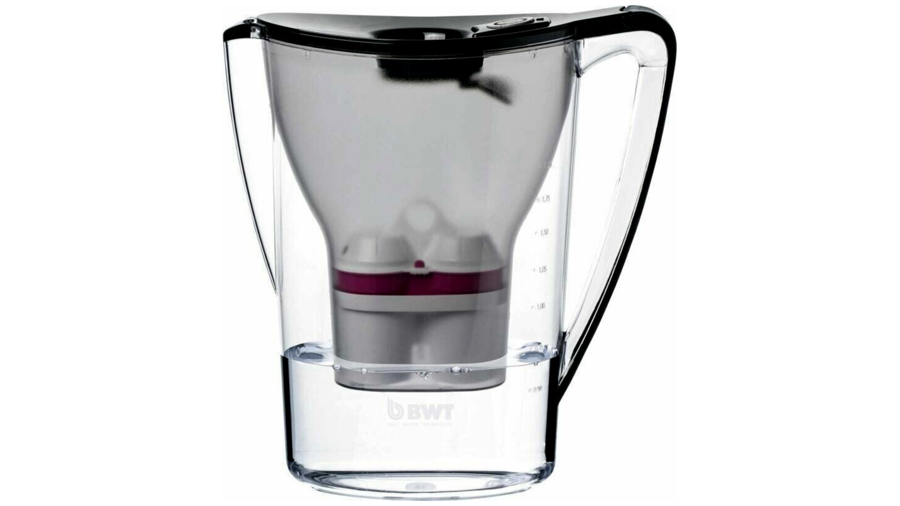 A BWT Aqualizer Home 2,7 literes vízszűrő kancsó egyszerű és hatékony megoldás mindenkinek, aki szeretné javítani a csapvíz ízét és minőségét otthon vagy az irodában. Letisztult, fekete felső résszel és átlátszó tartállyal készül, így egy pillantással ellenőrizhető a vízszint és a víz tisztasága, formája pedig hűtőajtó-polcra is ideálisan illeszkedik.
