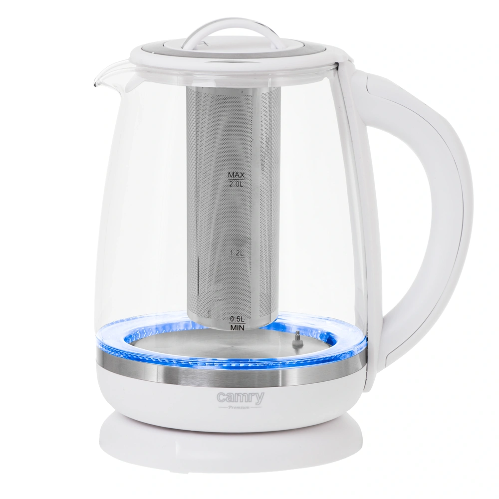Elegáns, átlátszó kivitel, praktikus teainfúzor és precíz hőmérséklet-szabályozás: ez a modern vízforraló ideális választás mindenkinek, aki komolyan veszi a teázást és a forró italok elkészítését. A beépített kosárnak köszönhetően közvetlenül a készülékben készíthetők a gyógyteák, finom keverékek és egyéb forró italok, miközben az 5 színű LED háttérvilágítás segít a megfelelő hőfok kiválasztásában.