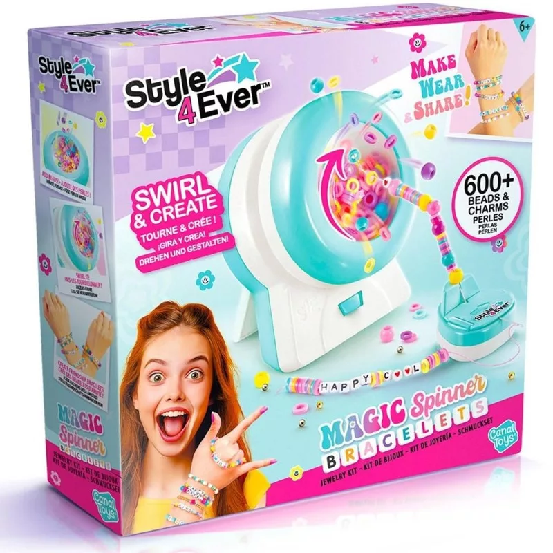 Hogy mi derítheti mosolyra legjobb barátnőidet? A kulcs a vidám színekben és kisugárzásban rejlik! Ezzel a Style 4 Ever Pörgő barátságkarkötő-készítő szettel csodás ékszereket és modern kiegészítőket készíthetsz, melyekkel biztosíthatod az okostelefonodat, vagy egyedivé varázsolhatod az iskolatáskádat. A csomag egy praktikus pörgettyűs eszközt is tartalmaz, amivel változó színkavalkádot biztosíthatsz a karkötőknek és láncoknak.