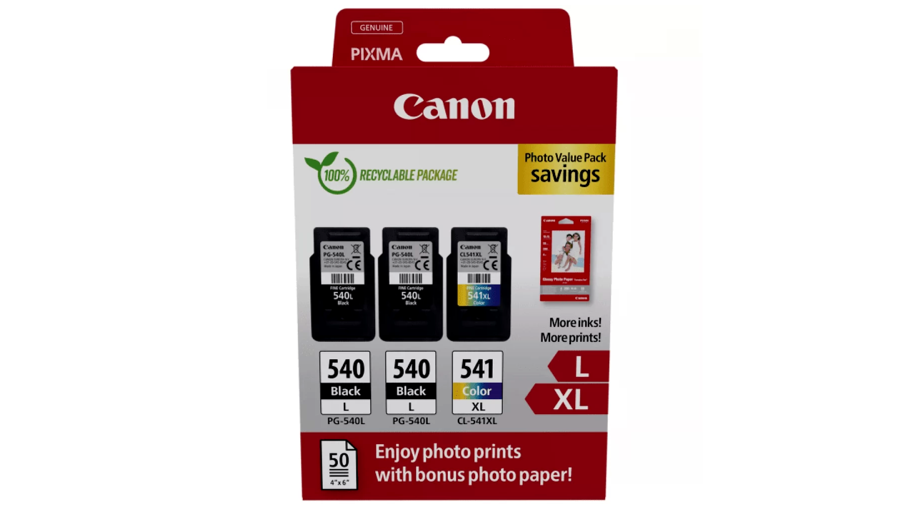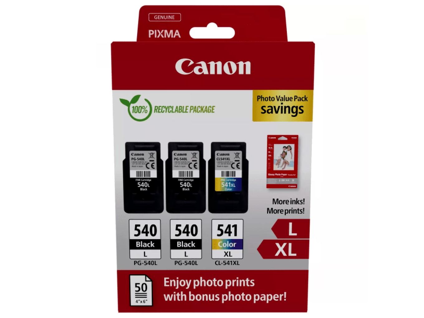 Canon 2x PG-540L/CL-541XL Eredeti Tintapatron + 50db Fotópapír - Fekete/Színes