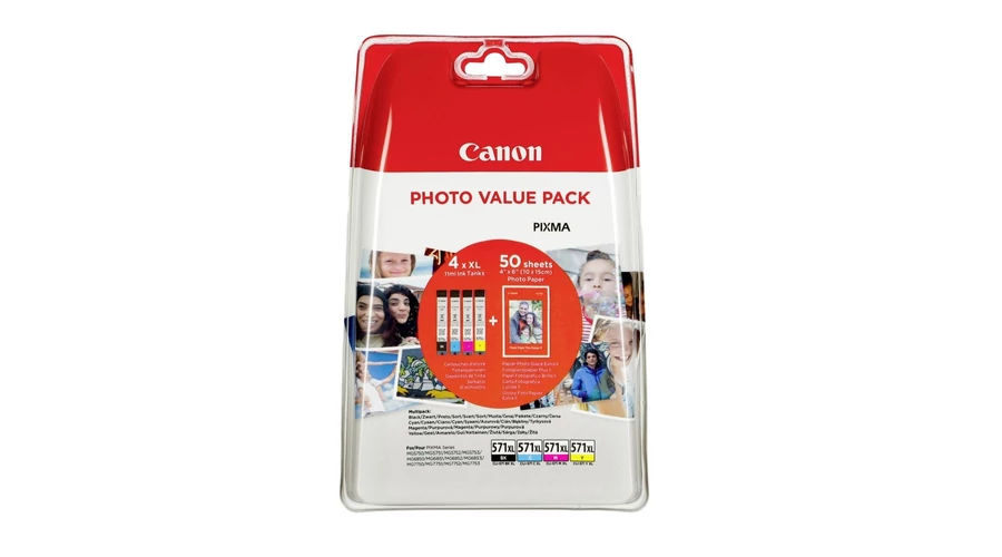 A Canon CLI-571XL multipack kiváló választás mindazoknak, akik éles szöveget, ragyogó fotókat és megbízható nyomtatási minőséget szeretnének Canon Pixma készülékükhöz. Az XL kapacitásnak köszönhetően jelentősen tovább használható, miközben a Canon eredeti tintatechnológiája gondoskodik a konzisztens, labor-minőségű nyomatokról.