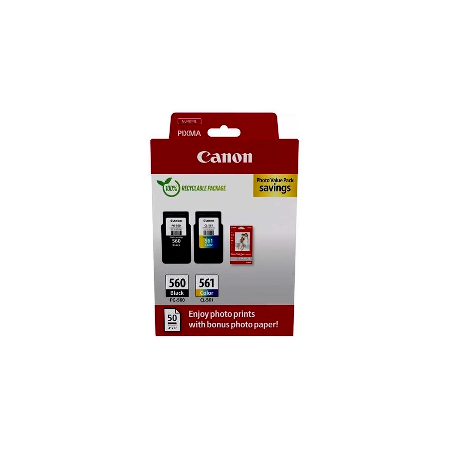 Canon PG-560 / CL-561 Eredeti Tintapatron + 50db Fotópapír - Fekete / Színes