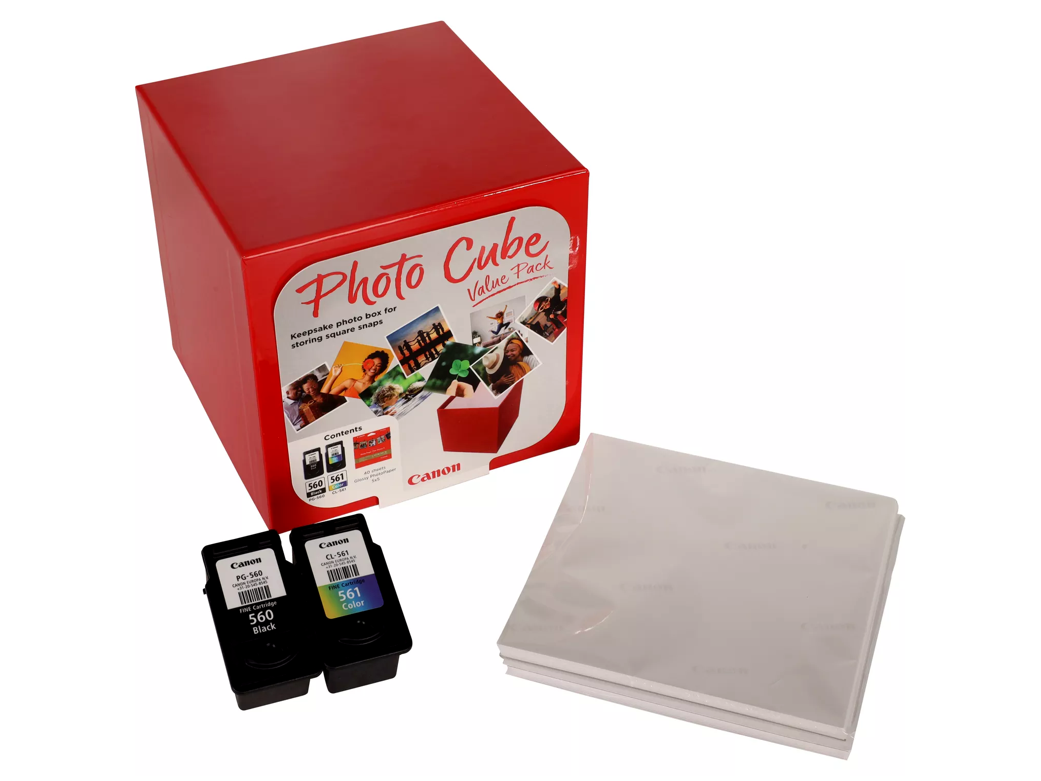 A Photo Cube nagyszerű módja a fényképek biztonságos tárolásának. Elég kicsi ahhoz, hogy otthonában tárolja, és tökéletes módja annak, hogy a legértékesebb fényképeit tárolja, vagy ajándékba adja barátainak és családtagjainak. A piros doboz mérete 14 x 14 x 14 cm (hozzávetőlegesen), így rengeteg helyet biztosít a kinyomtatott képek tárolására. A négyzet alakú fotónyomtatás népszerű a fiatalok és a család körében, mivel a közösségi médiabarát formátum kreatívabb nyomtatást tesz lehetővé. Ez a csomag tökéletes a közösségi média nyomtatáshoz, mivel eredeti Canon PG-560 fekete tintapatronokat, CL-561 C/M/Y színes tintapatronokat és 40 darab 5x5" méretű négyzetes fotópapír Plus Glossy II lapot tartalmaz, így kreatívabb nyomtatást tesz lehetővé.