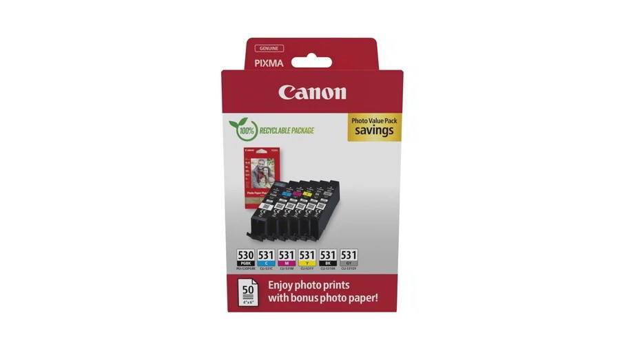 Canon PGI-530 / CLI-531 Photo Value Eredeti Tintapatron Multipack + 50 db Fotópapír - Többszínű