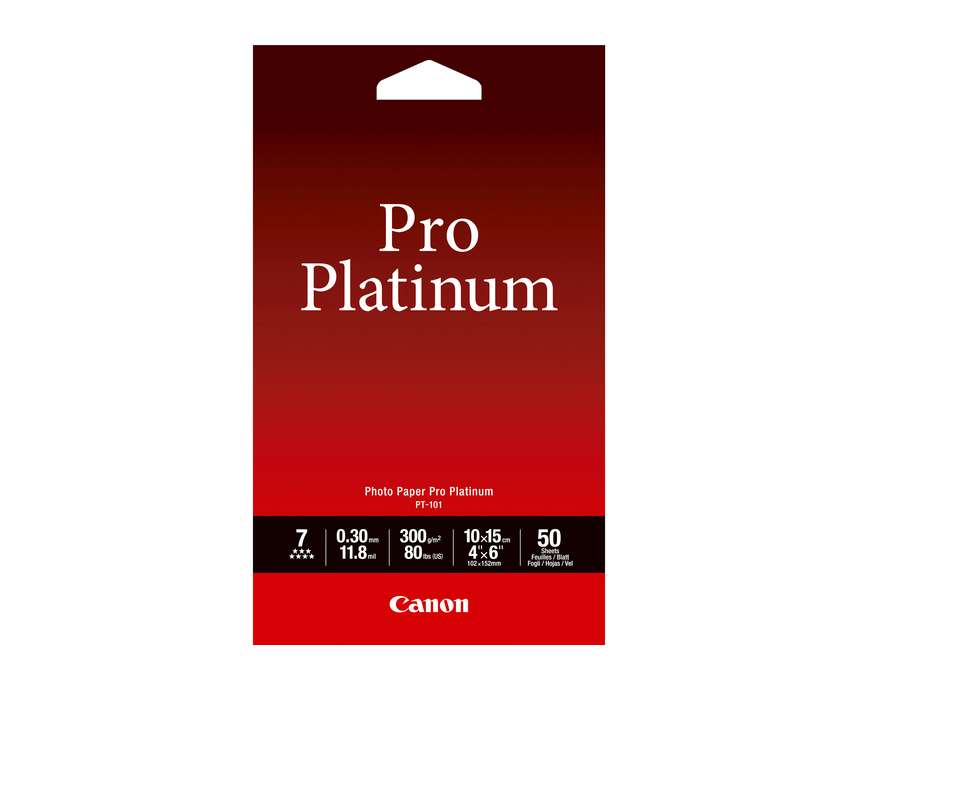 A PT-101 Pro Platinum papír egy nagy optikai sűrűségű, hatrétegű papír, amelyet olyan professzionális fotósok számára terveztek, akik a legjobb képreprodukciót keresik, és olyan nyomatot szeretnének, amely a legmagasabb minőséget nyújtja. A ChromaLife tintákkal együtt használva ez a Canon Pro Platinum papír olyan tartóssággal rendelkezik, hogy akár 200 évig is eltarthat, ha egy fotóalbumban gondozzák. Ez a csomag 50 darab 4x6" méretű papírlapot tartalmaz.