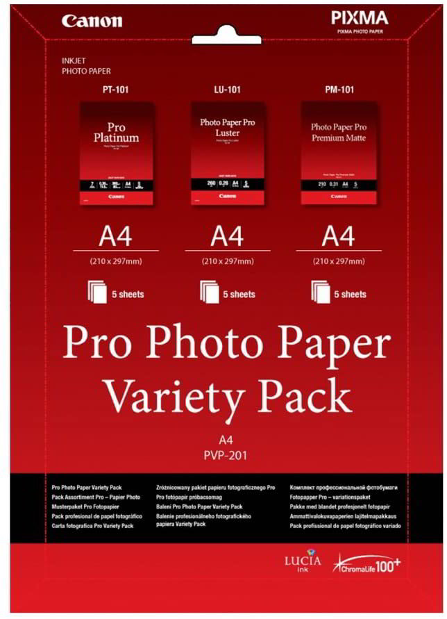 Ez a professzionális fotópapír-választék ideális méretet és lehetőségeket kínál a Canon PIXMA nyomtatóval történő tintasugaras nyomtatáshoz. Használja a Professional Photo Paper Platinum-ot a végső ragyogáshoz, élénk színekhez és magas színstabilitáshoz, professzionális fotópapír a szín és a szürke tónusok gazdag megjelenítéséhez, valamint a fekete-fehér és színes fényképekhez, művészeti nyomatokhoz, ahol a meleg színeknek és a szürke tónusoknak nagy szerepe van.