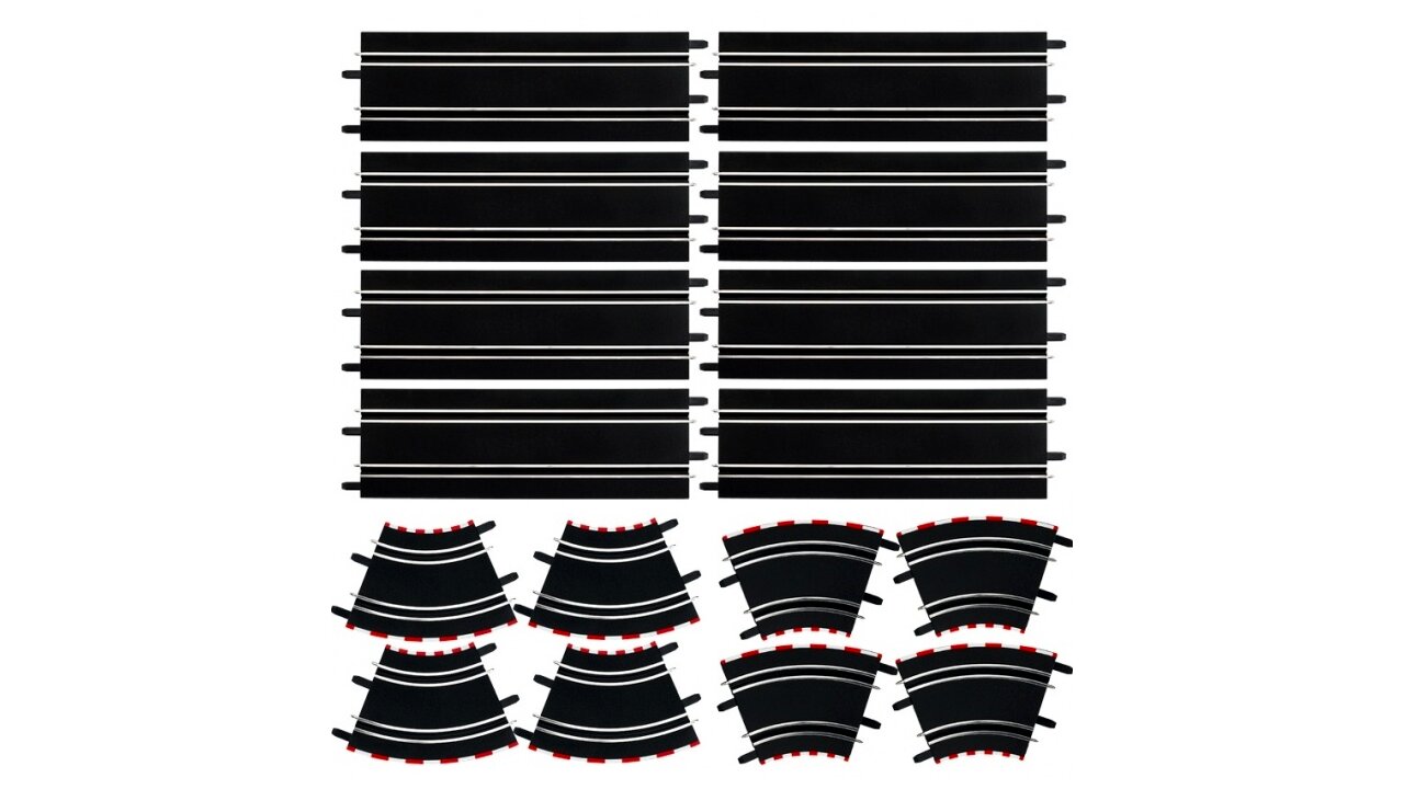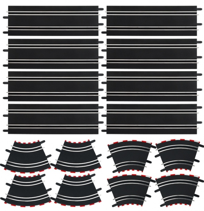 Egy csomag tartalma: 8 db egyenes 342 mm, 4 db 1/45 fokos kanyar, 4 db 1/45 fokos döntött kanyar