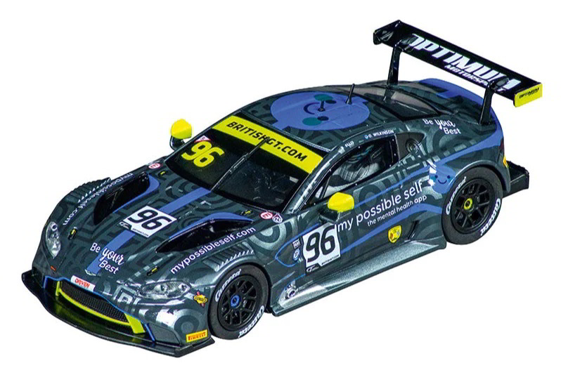 Az új Aston Martin Vantage GT3 "Optimum Motorsport, No.96" a GT3 versenypályáról közvetlenül a Carrera pályára versenyez otthon. A brit gyorshajtó a 2019-es brit GT Bajnokságon az Optimum Motorsports versenycsapat 96-os számával indult, és minden verseny után a kilencedik helyet érte el az összetettben. Az elegáns jármű fekete egy igazi sokoldalú, és meggyőzi a legjobb teljesítményt egy osztály a saját.