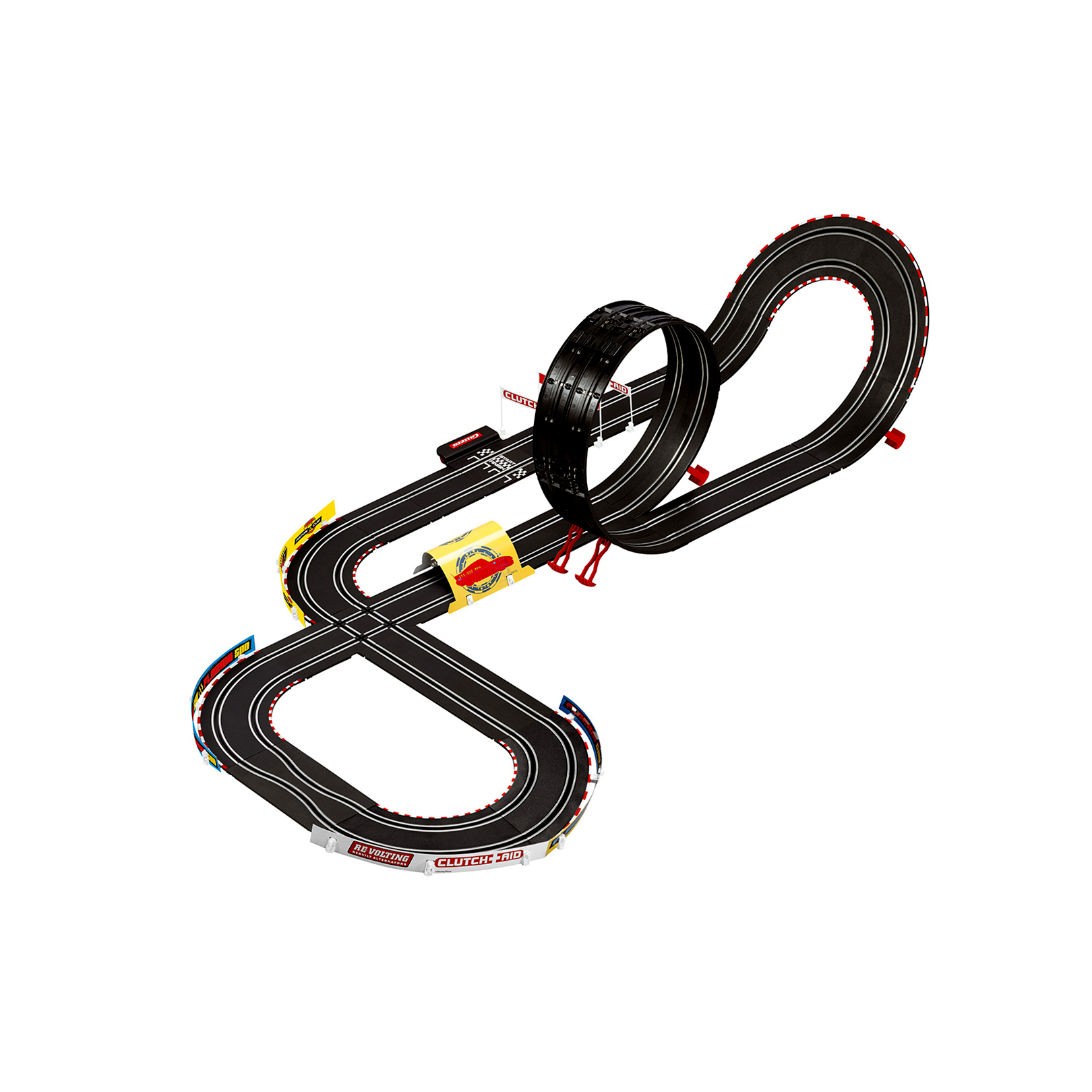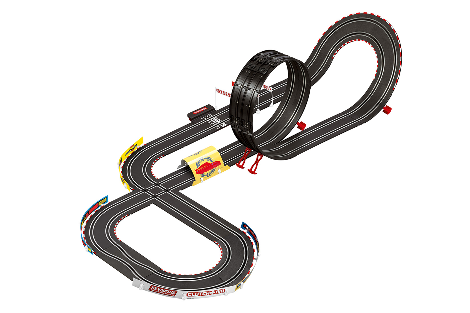 - 5,3 méter hosszú versenypálya nagysebességű egyenesekkel, kanyarokkal, szűk keresztmetszettel, kereszteződéssel, átjáróval, hurokkal