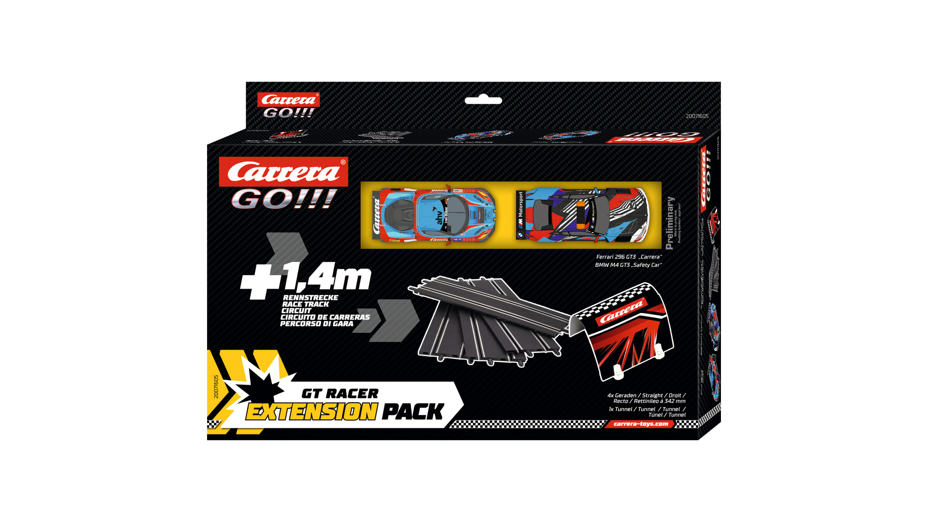 • A termék kiegészítő, önmagában nem használható, meglévő Carrera GO!!! alappálya szükséges.