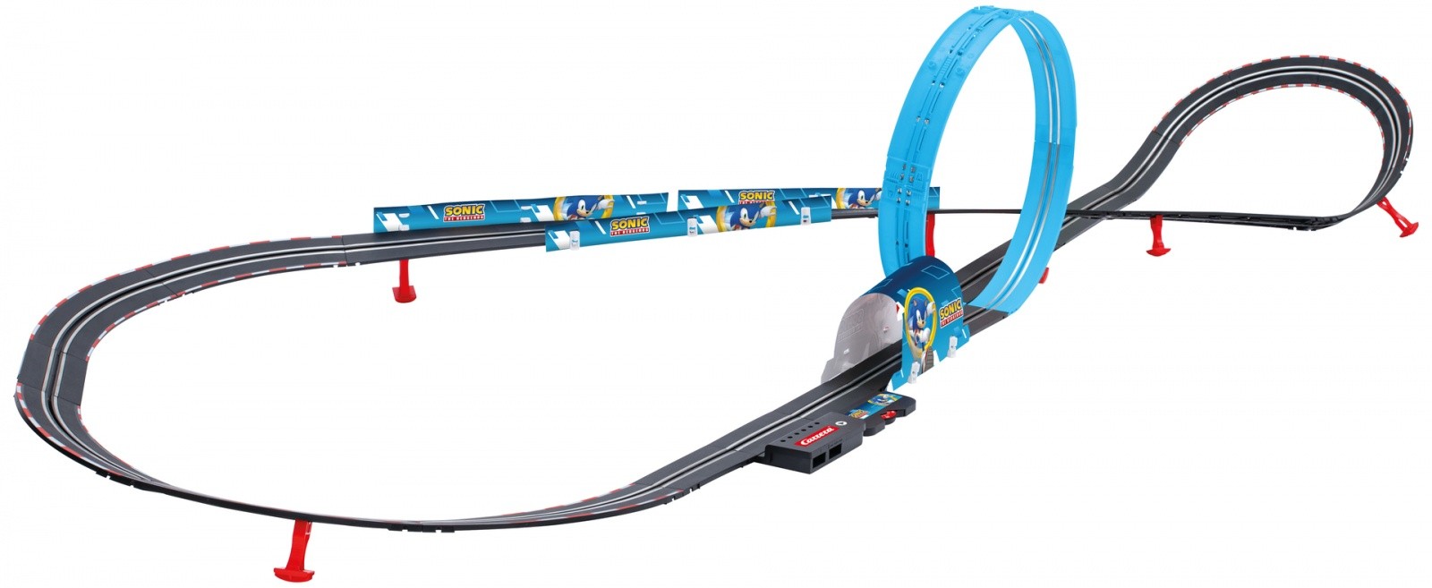 6 m hosszú autópálya Sonic autóval, hurkokkal, döntött kanyarral, merőleges fallal, egyenesekkel, fordulatokkal, kerékszámlálóval ellátott részekkel és egyéb alkatrészekkel. Más különböző pályákat is építhet képzelete szerint. Tartalom: Egy pálya, egy autó, egy vezérlő.