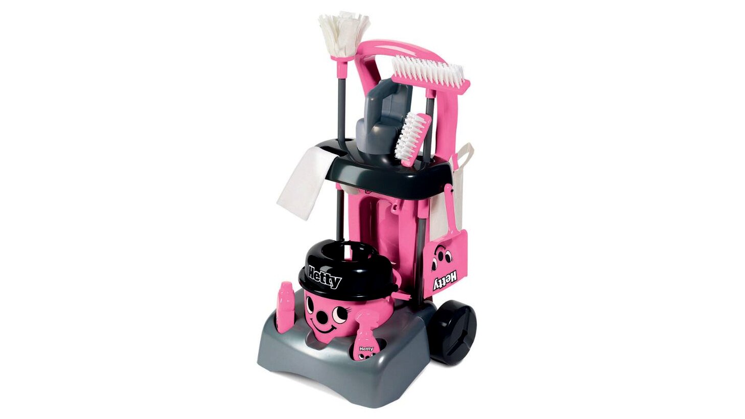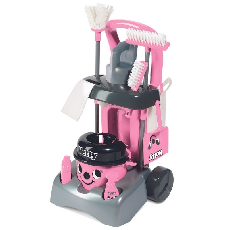 Ezzel a prémium minőségű, rózsaszín Hetty takarító kocsival a kicsik játékosan ismerkedhetnek meg a takarítás mikéntjével. A készletben olyan alapvető takarítóeszközök kaptak helyet, mint a felmosóvödör, a felmosó, a szemeteszsák, a hosszú nyelű seprű, a lapát, a kefe, a játék tisztítószeres flakonok, vagy épp egy stílusos, ráadásul valóban működő kézi porszívó.