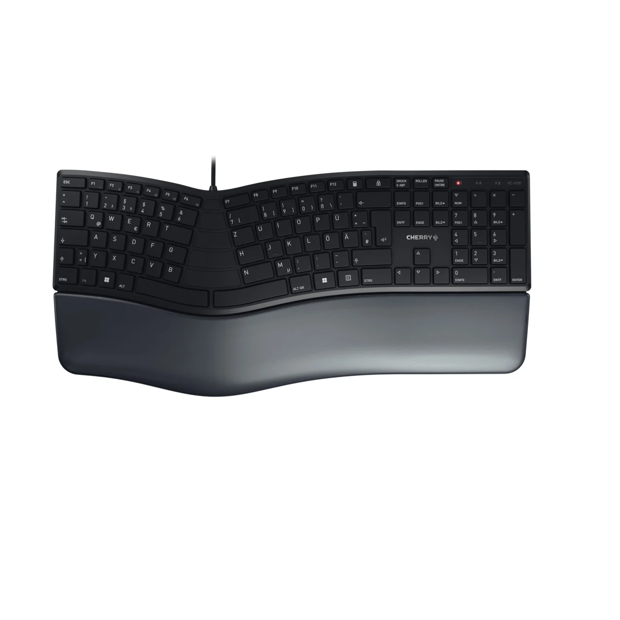Az ergonómikus kialakítású billentyűzet csökkenti vagy megszünteti a vállfeszültséget és más kellemetlen tüneteket, amelyek számítógépes munka során jelentkezhetnek. Különleges formatervezése révén a kezek és karok természetes pozíciót vesznek fel, ezzel mérsékelve a vállterhelést. Emellett a puha tenyértámasz kényelmes pihenést nyújt a kezeknek és megelőzi a nyomáspontok kialakulását.