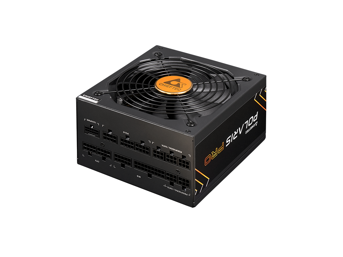 A CHIEFTEC Polaris Pro sorozat fejlett hőszabályozással rendelkezik a Zero RPM üzemmóddal, amely lehetővé teszi az optimális egyensúlyt az alacsony energiafogyasztás melletti csend és az ideális hűtés között, 80 PLUS® PLATINUM tanúsított hatékonysággal. A Polaris Pro sorozatot az Intel legmodernebb ATX 3.0 szabványához tervezték, natív PCIe GEN5 csatlakozóval. A Polaris Pro sorozat 100%-ban csúcskategóriás japán kondenzátorokkal készült, hogy példátlanul szigorú feszültségszabályozást, valamint alacsonyabb hullámzást és zajt érjen el a rendszer teljesítményének és kiváló tartósságának maximalizálása érdekében. A teljesen moduláris kábelkezelés tiszta és kényelmes felépítést biztosít bármely rendszeren belül.