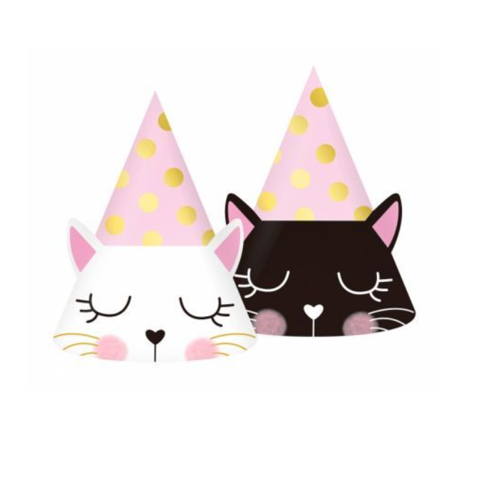 Ünnepeljétek a születésnapot ebben az aranyos cicás papírcsákóban. A csomag 6 db gumival rögzíthető csákót tartalmaz.