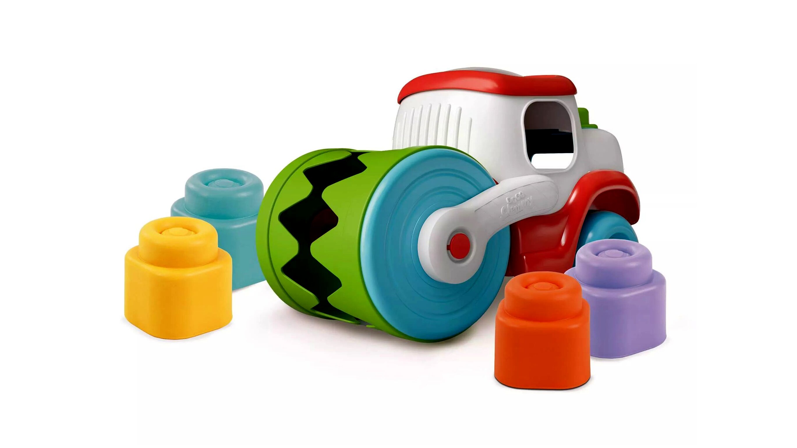 Az úthenger úgy lett kialakítva, hogy a puha építőkockák egyszerűen behelyezhetők és „kihalászhatók”, ezáltal a baba újra és újra szívesen ismétli a mozdulatokat. A kockák könnyen tornyozhatók, így már a legkisebbek is sikerélményhez jutnak.