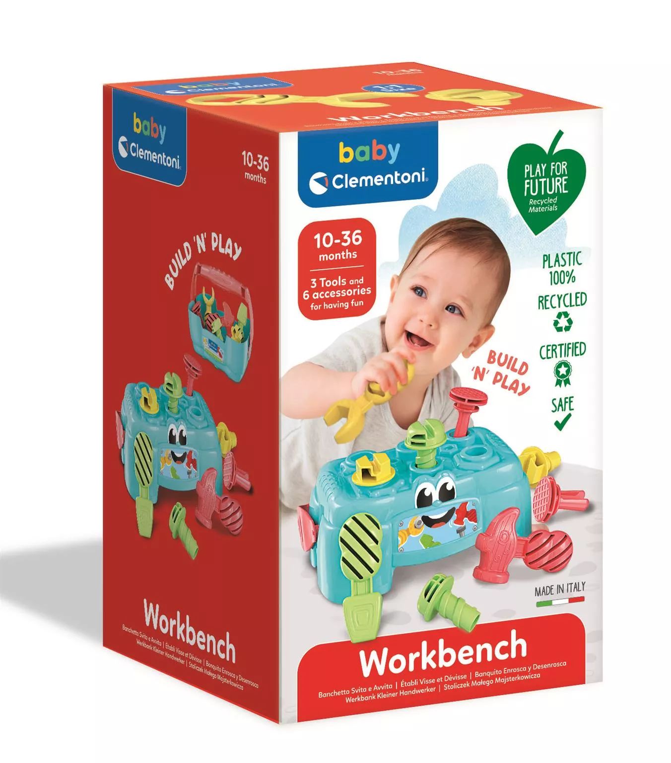 A Clementoni szerszámos ládikó vidám színekben és barátságos dizájnnal készült, amely azonnal felkelti a kisgyermekek figyelmét és érdeklődését.