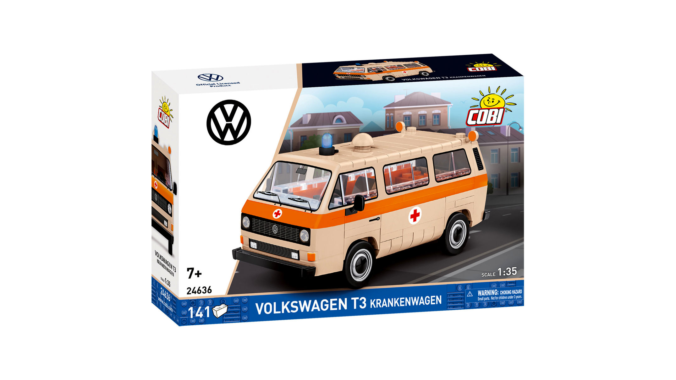 Fedezd fel a nyugatnémet sürgősségi orvosi ellátás egyik legismertebb járművét egy különleges, építőkockákból összeállítható makett formájában! Ez a részletgazdag, 141 elemből álló készlet a legendás Volkswagen T3 mentőautó jellegzetes formavilágát és színvilágát idézi meg, 1:35 méretarányban. A modell építése nemcsak szórakoztató időtöltés, hanem igazi időutazás is az 1970–80-as évek klasszikus „Bulli” korszakába.