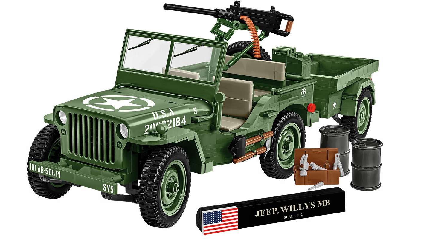 Cobi 2804 Willys MB & Trailer Executive Edition terepjáró utánfutóval 1580 darabos műanyag makett 1:12