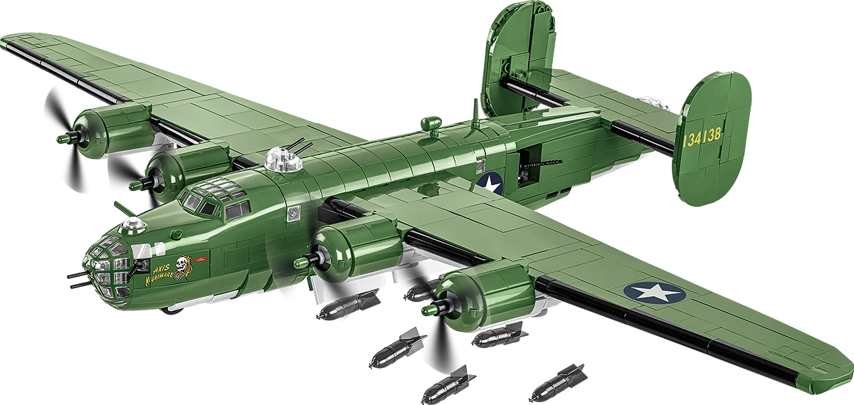 Fedezd fel az ikonikus „Axis Nightmare” repülőgépet a COBI 1445 darabos építőjáték készletével, amely a híres B-24 Liberator bombázót ábrázolja. Ez a lenyűgöző modell 1:48 méretarányban készült, és kizárólag tartós nyomtatott blokk puzzle darabokkal van ellátva, így nem kell matricákkal bajlódni!