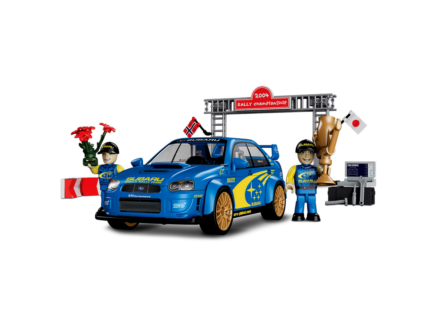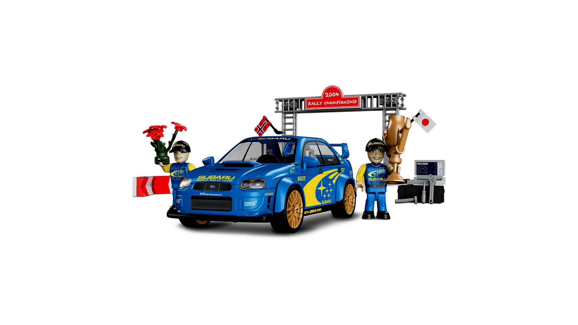 A szett nem csupán egy autót tartalmaz, hanem egy miniatűr versenyfinálé-jelenetet is. A bonyolultan kidolgozott célkapu, a rali-kiegészítők és a két versenyruhás pilótafigura segít eljátszani a bajnokság legizgalmasabb pillanatait és saját történeteket kitalálni.