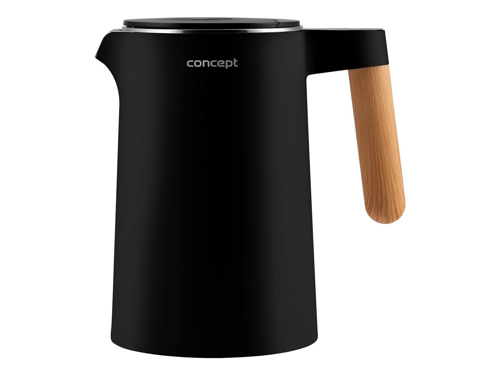 A Concept RK3301 vízforraló minden háztartásban helyet fog találni. Vonzó dizájnját aláhúzza a minimalista talapzaton ülő matt fekete test, amelyet elegáns, fa kivitelű fogantyú egészít ki. 1,5 literes térfogatával kényelmesen elkészítheti akár 6 csésze kedvenc forró italát.