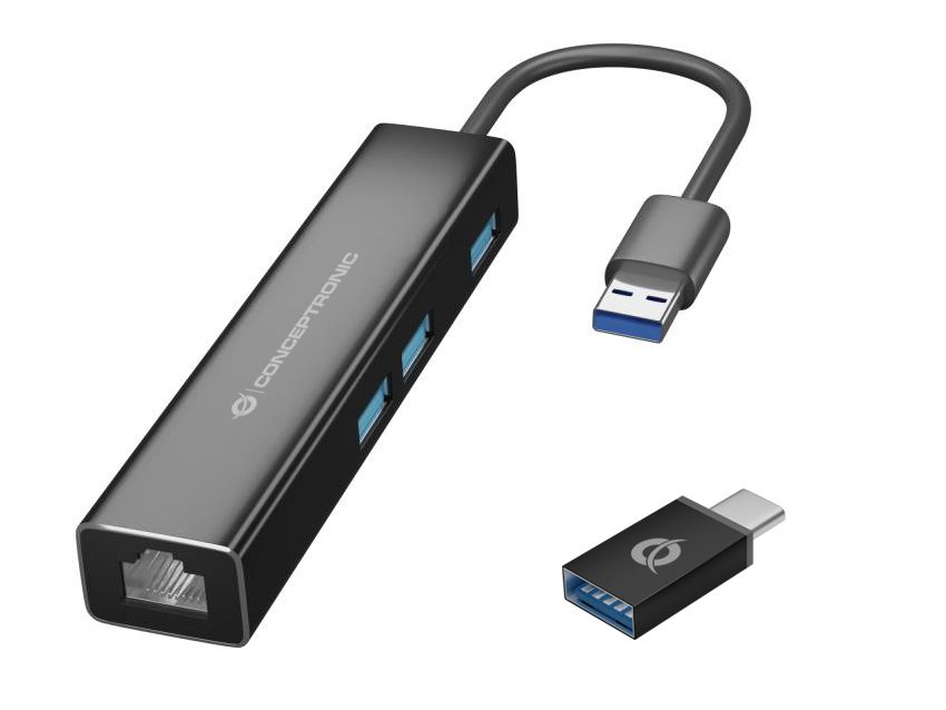 A Conceptronic USB Hub és Gigabit Ethernet Combo Adapter segítségével könnyedén csatlakozhat az internethez a laptop beépített USB-portján keresztül. Ez ideális megoldás MacBook vagy más Windows számítógépekhez, amelyek beépített vezeték nélküli hálózattal rendelkeznek, de nem rendelkeznek Ethernet-porttal. Az adapter egy hagyományos USB-elosztót is kombinál. Így csatlakoztathat külső USB-perifériákat, például MP3-lejátszót, digitális fényképezőgépet, nyomtatót vagy pendrive-ot. Az USB-C – USB-A konverter kényelmes adatszinkronizálást és töltést biztosít bármely USB-C-eszközhöz, például okostelefonhoz, hordozható játékkonzolhoz, MacBookhoz, Chromebook Pixelhez vagy bármely hasonló, USB-C porttal rendelkező, késői modellhez tartozó laptophoz.
