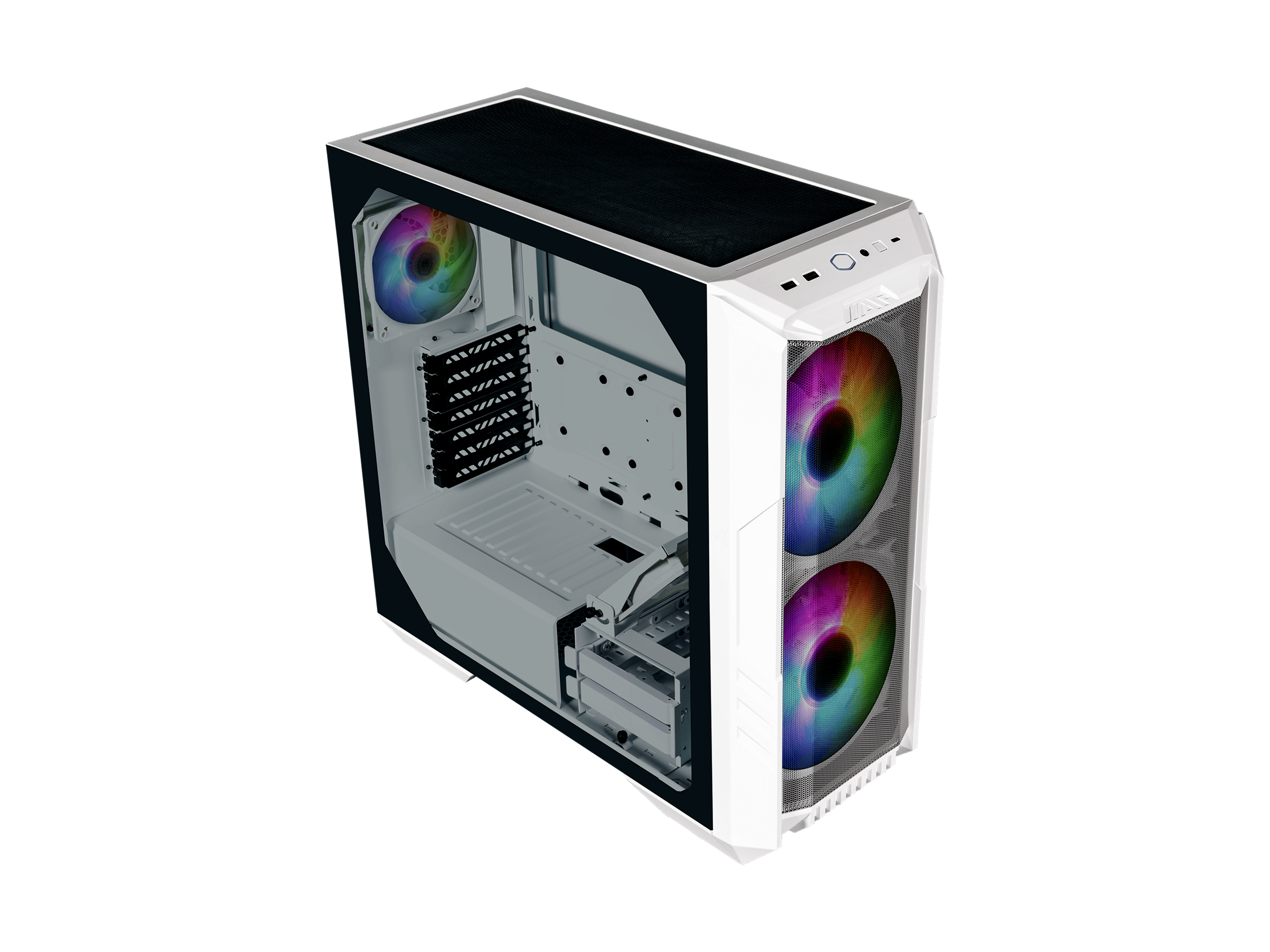 A Cooler Master klasszikus HAF sorozata visszatér a HAF 500-zal. A nagy légáramlásra és a csúcsteljesítményre épített HAF 500 ikonikus, 200 mm-es beszívó ARGB ventilátorokkal büszkélkedhet, amelyek páratlan szívó- és hűtési hatékonyságot biztosítanak. A ház egy külön GPU-ventilátorral rendelkezik, amely különféle GPU-hosszokhoz állítható. A tetején és az elülső panelen található bőséges hely a kettős 360 mm-es radiátorok számára, így a legfejlettebb vízhűtéses beállítások is helyet kapnak.