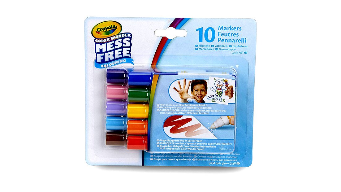 Gyermeked elhasználta kedvenc maszatmentes filctollait? Semmi probléma, a Crayola ColorWonder filctoll utántöltő készlettel pótolhatod a hiányzó darabokat! A filctollak különlegessége, hogy csak a hozzájuk tartozó színezőkön látszik a színük, minden más felületen átlátszó marad. A szett 10 db filctollat tartalmaz.