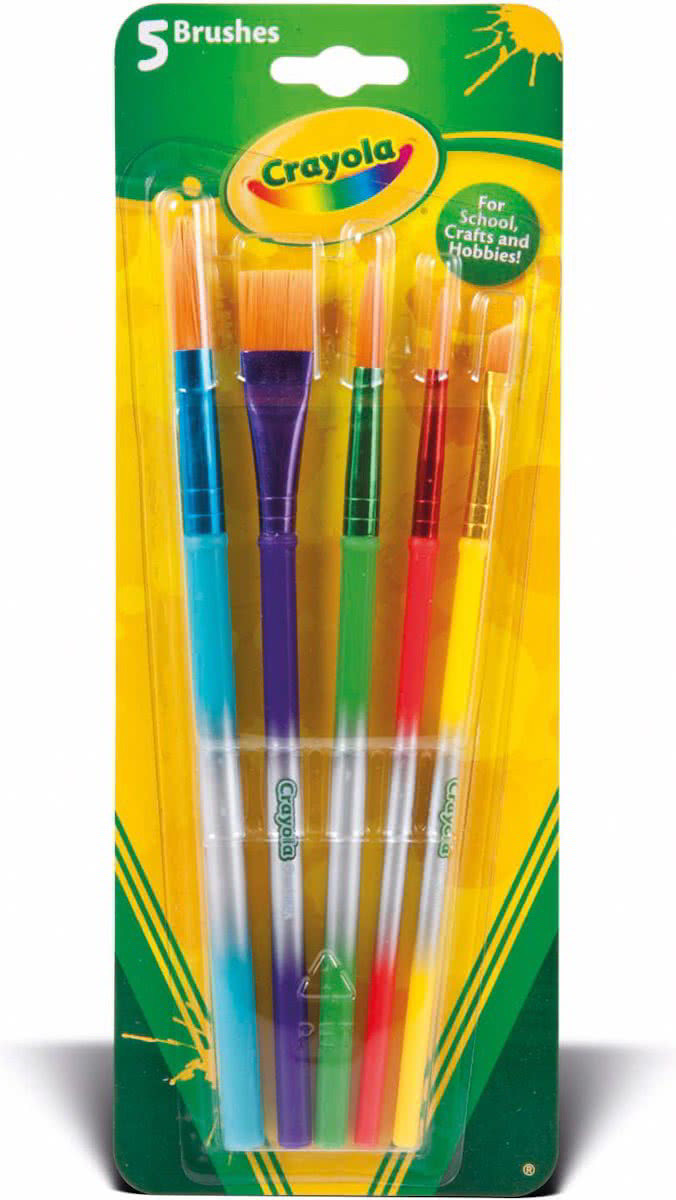 5 db színes, különböző vastagságú és színű festőecset, segítségükkel szinte bármilyen művet képes lehetsz elkészíteni! Az ecsetek nem hullajtják a sörtéjüket, és bármely Crayola ecsetkész festékkel együtt használhatóak!