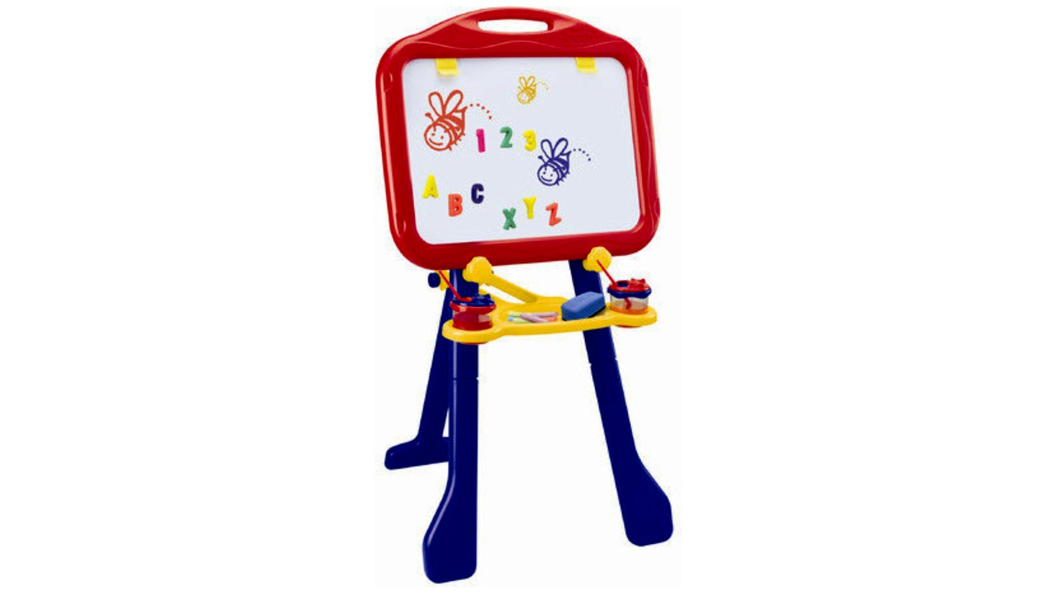 A Crayola rajzállvány színpompás kiegészítő lehet bármely gyerekszobában. A játék fejleszti a kreativitást, a kézügyességet és a szem-kéz koordinációt. A rajzolást és írást kedvelő gyerekeket akár kisiskolás korukig is elkísérheti.