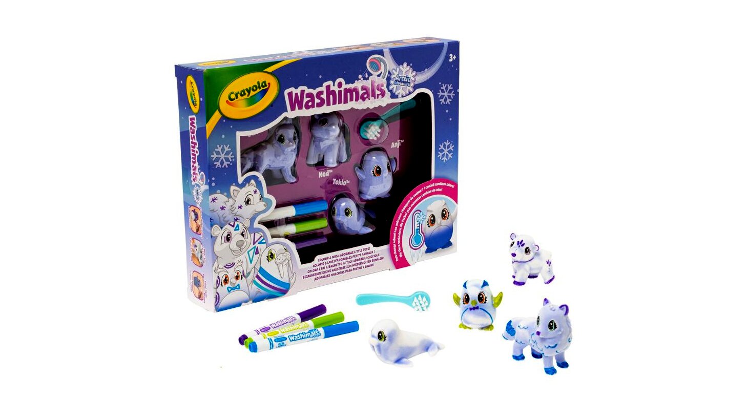 Válaszd a Crayola Washimals Jégvilág színezhető kisállatok készletet, és hagyd, hogy gyermeked saját magának alkossa meg a legszínesebb és legbájosabb jégvilágot!