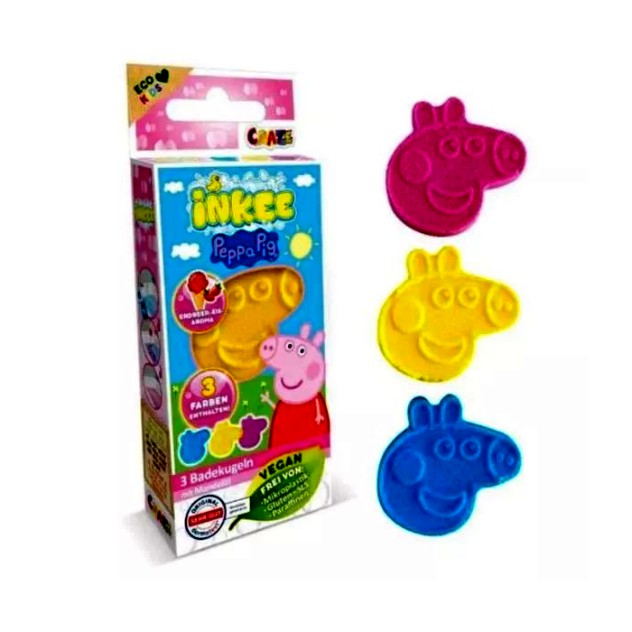 - Csomag tartalma: 3 darab színes Peppa malacos fürdőbomba