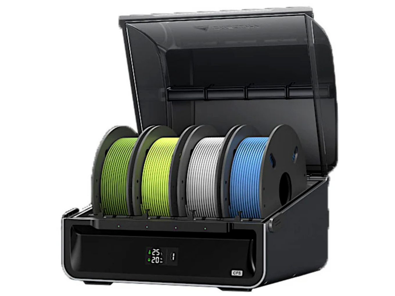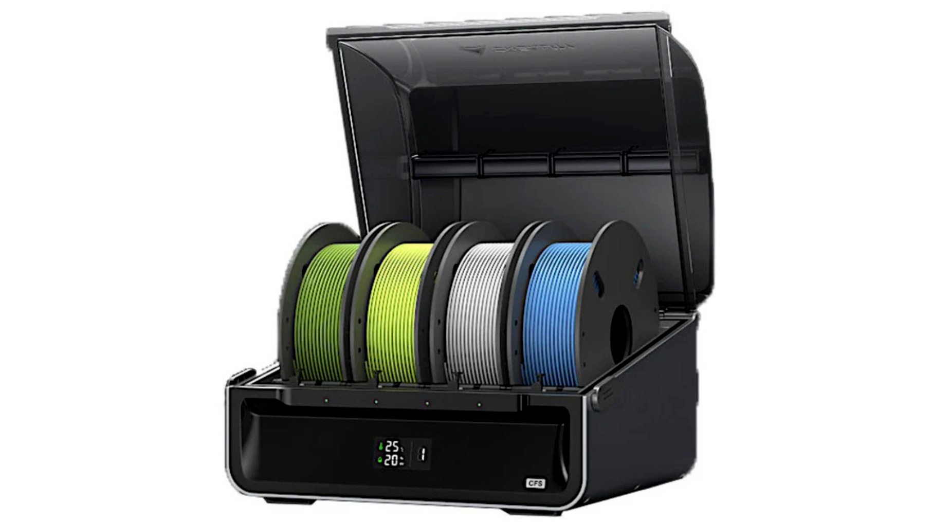A rendszer alapkiépítésben 4 orsót kezel, de a moduláris felépítésnek köszönhetően akár 4 CFS egység is összekapcsolható. Így egyetlen nyomtatási folyamathoz akár 16 különböző filament vagy szín állhat rendelkezésre – ideális látványos prototípusokhoz, funkcionális, jelölt alkatrészekhez vagy dekoratív, részletgazdag modellekhez.