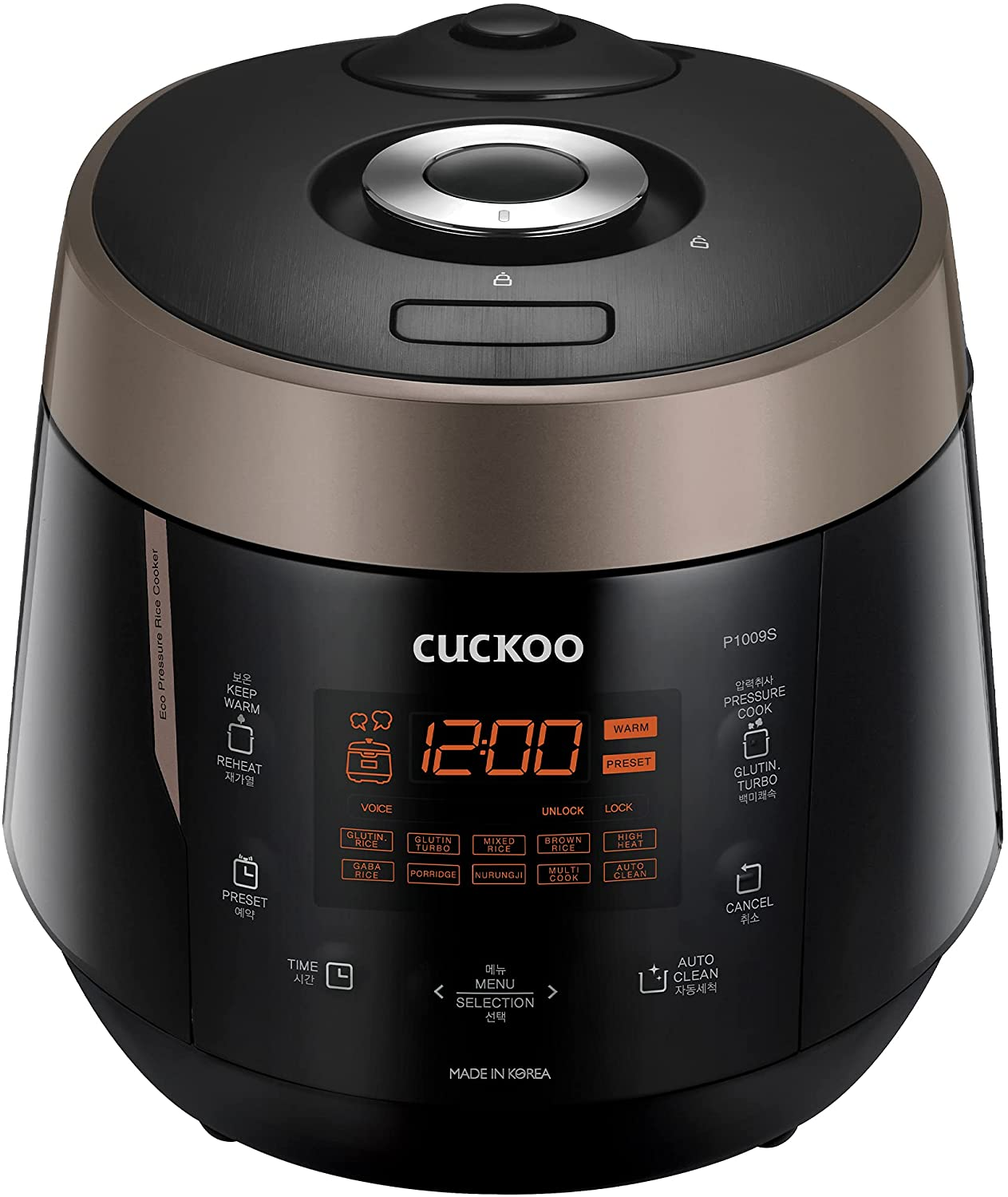 A Cuckoo CRP-P1009S egy indukciós gőznyomású rizsfőző amely számtalan beállítási funkciójával lehetőséget kínál a tökéletes főzési eredmény érdekében. Nagy kapacitásának köszönhetően akár 10 adag rizs is elkészíthető. A CRP-P1009S segítségével nem csak rizst készíthet, hanem joghurtot vagy saját sajtot is. Akár sushi rizst, mindenféle levest, zabkását vagy kenyeret is süthet. A CRP-P1009S saját programot kínál a prémium Gaba rizsfajta elkészítéséhez. A további kényelem érdekében a CRP-P1009S automatikus gőztisztítást kínál. Egy gombnyomásra a tisztítómechanizmus erős gőzsugár formájában aktiválódik, hogy higiénikusan tisztítsa meg a rizsfőző teljes belsejét, beleértve a vízleeresztő rendszert is. Egy másik kiemelés a Soft Steam Cap. Az "S-Line Path" technológia a Kakukk által szabadalmaztatott gőzszelep-rendszer, amely lehetővé teszi a gőz csendes és biztonságos távozását a főzés során és annak végén. Teljesen automatikusan szabályozza magát, és még kényelmesebb főzési élményt biztosít.