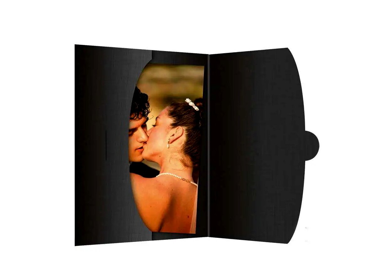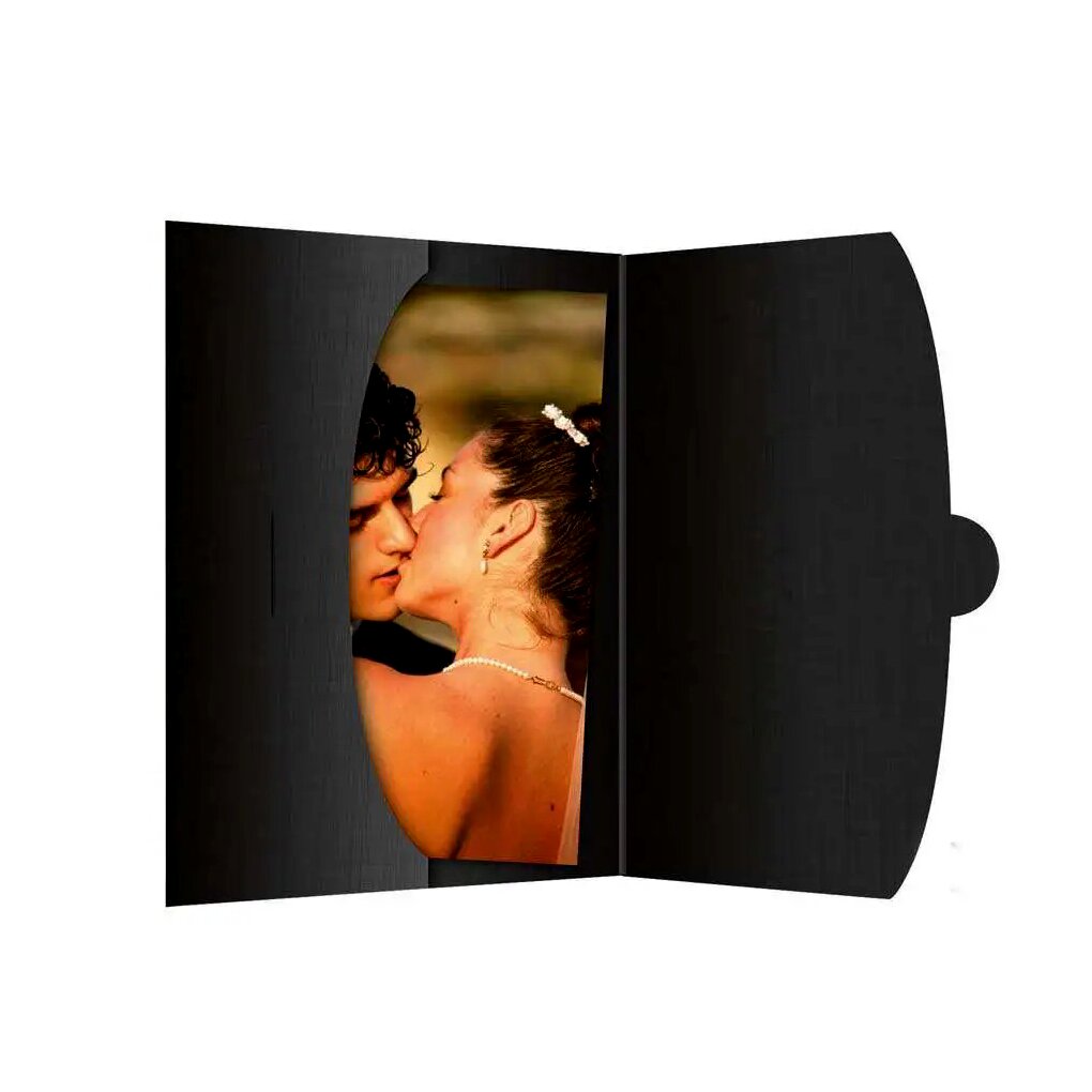 A fotómappák prémium minőségű papírból készülnek, ami nemcsak hosszú élettartamot biztosít, hanem elegáns megjelenést is kölcsönöz a képeknek. A visszafogott fekete szín bármilyen alkalomhoz és stílushoz illeszkedik, így tökéletes választás esküvői, rendezvényi vagy művészi fotók számára is.