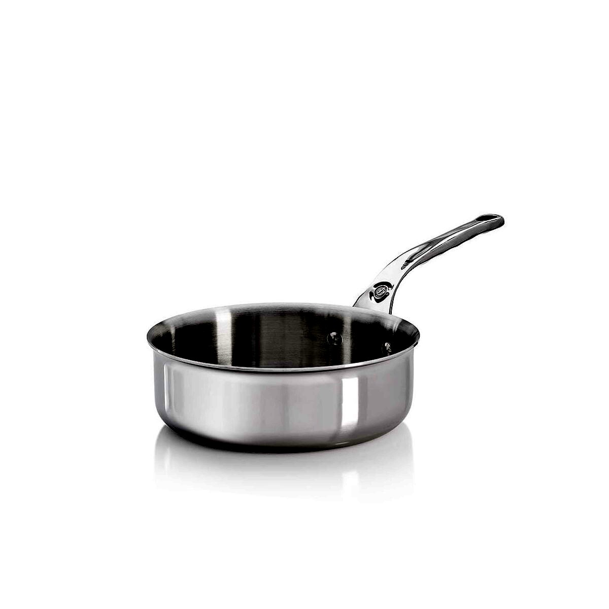 Serpenyő egyenes kiöntő peremmel, ideális kisebb zöldségek és húsdarabok pirítására.