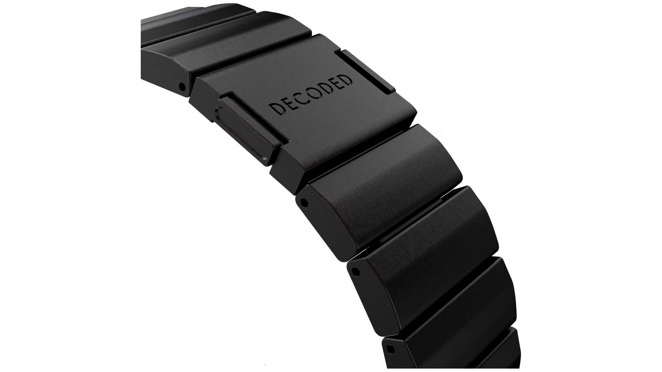 A szíj prémium minőségű titánból készül, amely egyszerre rendkívül tartós és különösen könnyű. A pontosan megmunkált, tagolt (csuklós) kialakítás kényelmes illeszkedést biztosít, miközben a fekete szín elegáns, időtálló megjelenést nyújt. Az ergonomikus forma tökéletesen követi a csukló vonalát, így hosszabb viselésnél is kényelmes marad.