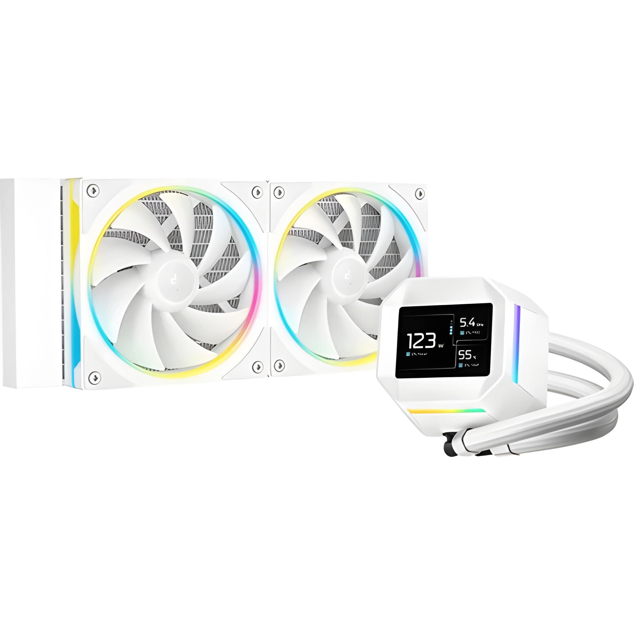 A DeepCool legújabb folyadékhűtő sorozata kifejezetten a nagy teljesítményű, modern asztali gépekhez készült, ahol a hatékony hűtés, az alacsony zajszint és a látványos megjelenés egyformán fontos. A fehér színű, 240 mm-es radiátorral szerelt, univerzális RGB CPU vízhűtés ideális választás igényes gamereknek, tartalomgyártóknak és tuning rajongóknak.