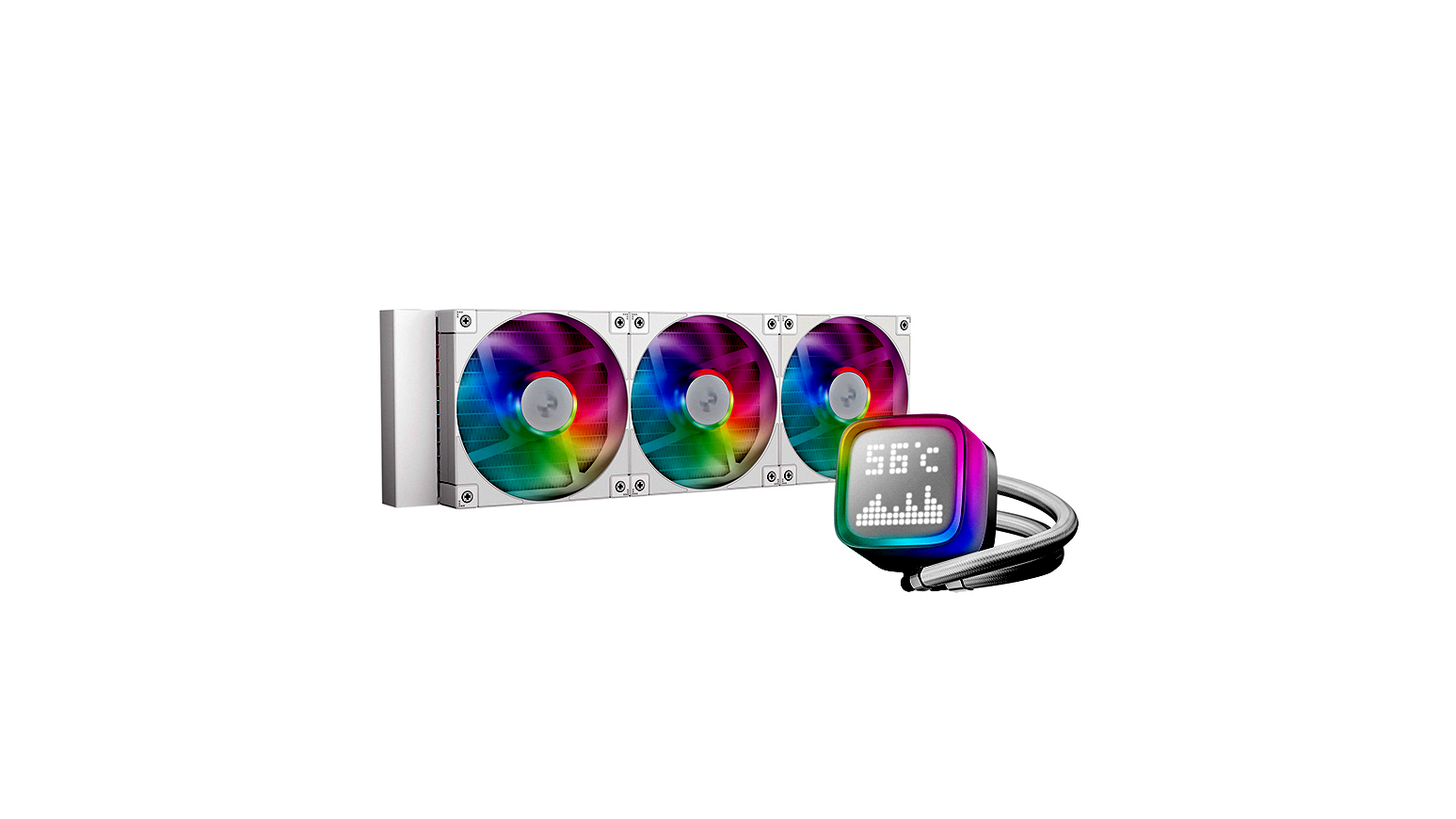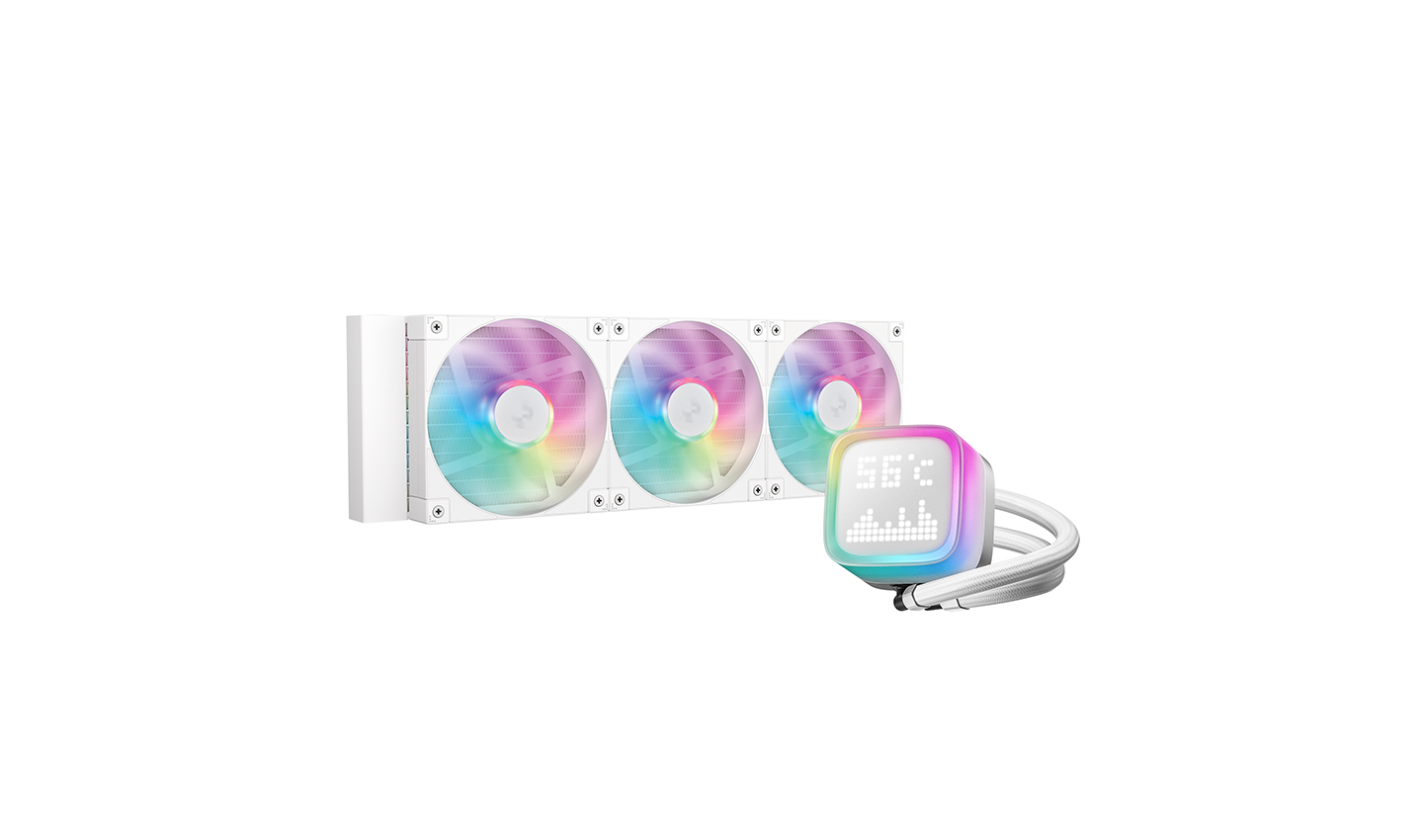 A teljesen fehér színvilág – beleértve a radiátort és a ventilátorokat – ideális választás design-orientált konfigurációkhoz. Az átlátszó, ARGB-vel megvilágított pumpafedél alatt elhelyezett pontmátrix kijelző különleges látványelemet nyújt, miközben a digitális megjelenítő hasznos információkat is meg tud jeleníteni, így a hűtés nemcsak hatékony, hanem egyedi és személyre szabható része lesz a gépnek.