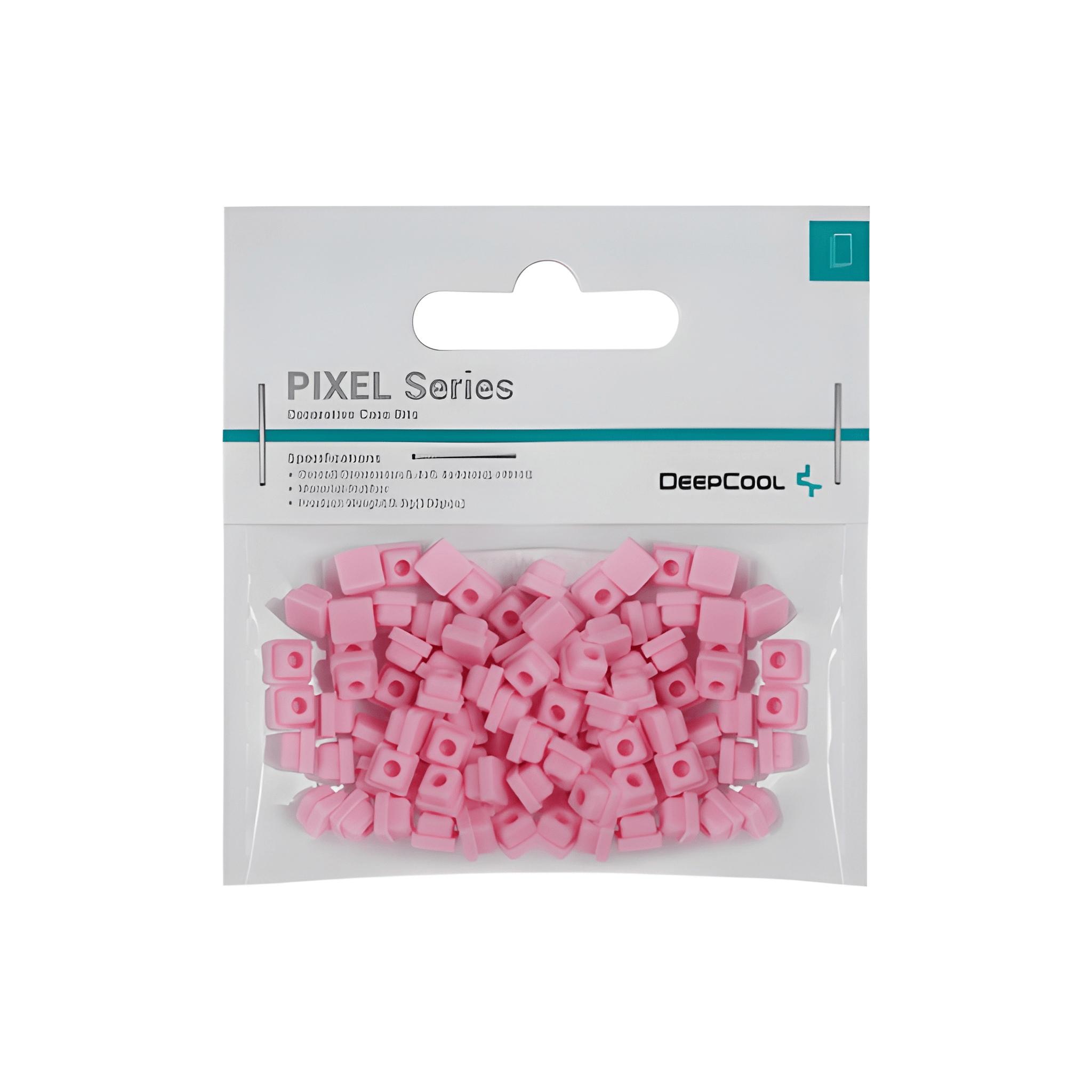 A készletben található rózsaszín szilikon PIXEL elemek kifejezetten DeepCool házak rácsos felületéhez lettek kialakítva. A kis „kockák” pontos mérete lehetővé teszi, hogy stabilan illeszkedjenek a kompatibilis modellek perforált front- vagy oldallapjába, így nem csúsznak ki, még mozgatás közben sem.