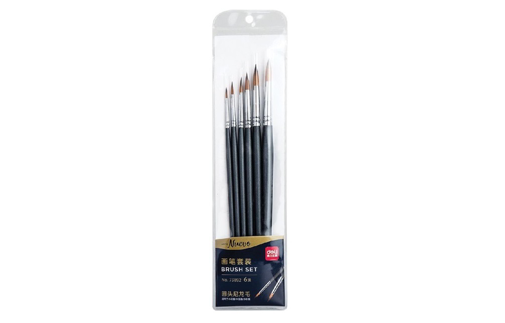 Különböző méretek: A csomag 6 különböző méretű ecsetet tartalmaz, amelyek lehetővé teszik a különféle festési technikák alkalmazását, legyen szó finom részletekről vagy nagyobb felületek lefedéséről.