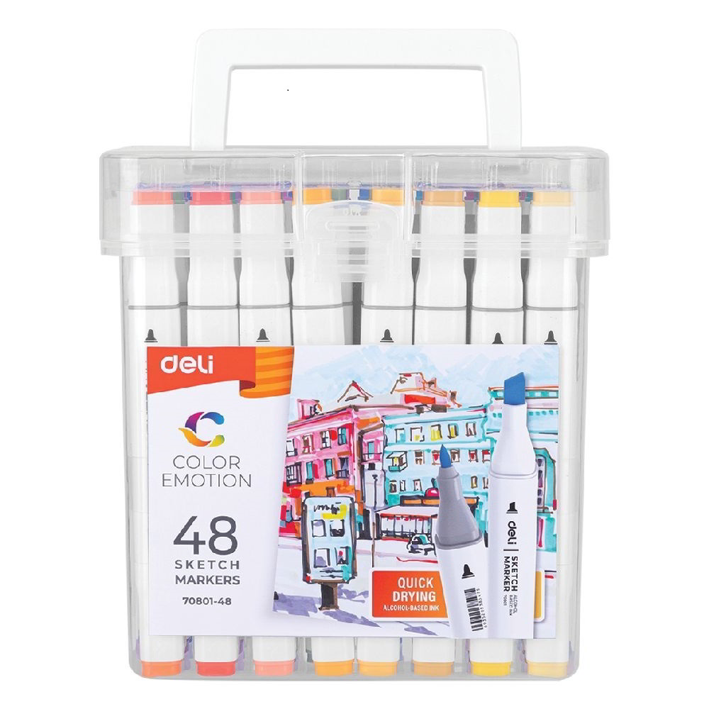 Sketch markerkészlet, kétvégű vágott és gömbölyű hegy, alkoholos, gyorsan száradó, Praktikus hordozó füllel.