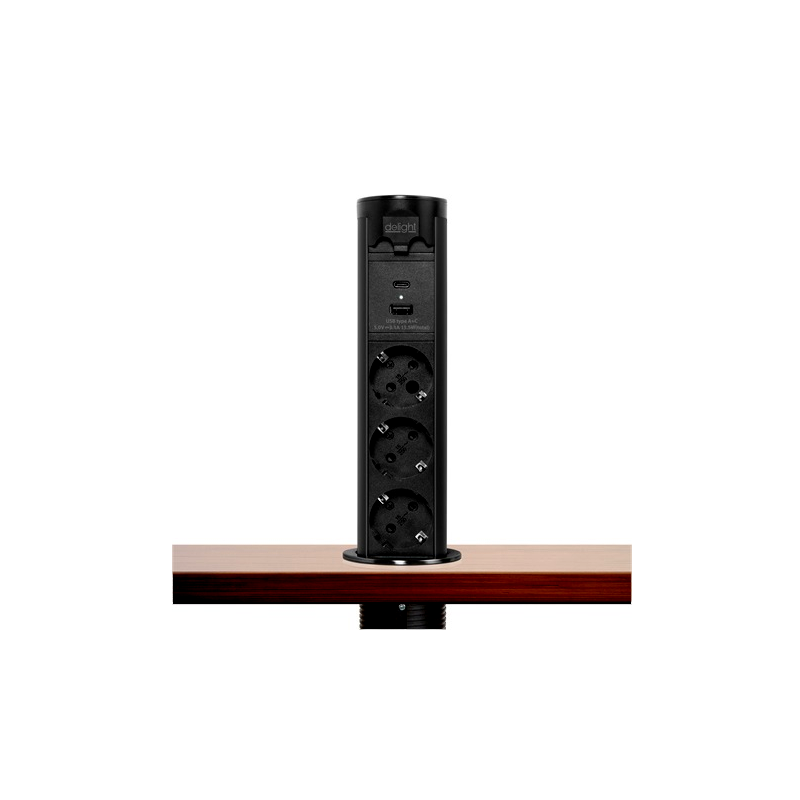 Motorosan süllyeszthető rejtett elosztó irodai és otthoni felhasználásra, fém házzal, 3 db gyermekvédelemmel ellátott hálózati aljzattal, dupla USB töltőegységgel. A legtöbb felületbe és design-ba beleillő kialakítás, függőleges beépítési lehetőség mérsékelten vízhatlan kezelőfelület.